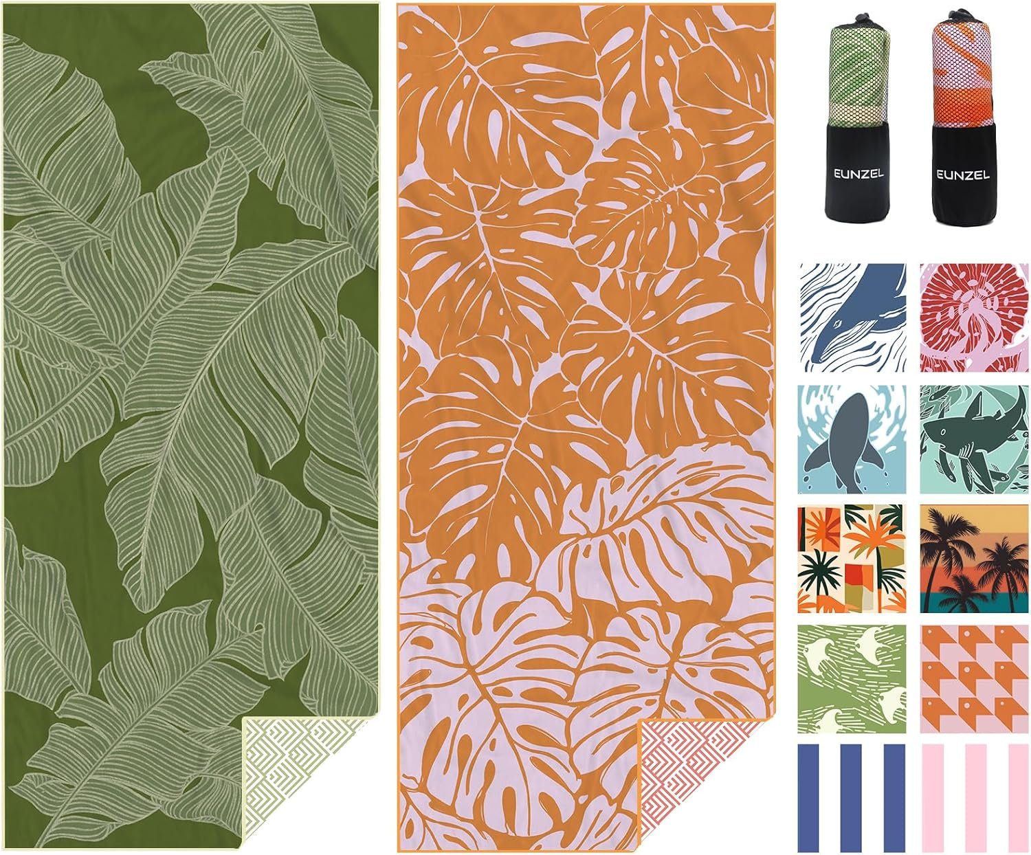 Eunzel 2 Pack Microfiber Beach Towel, Quick Dry Travel Towel Large Sand Free Towel for Beach, Camping, Swim Pool, Gym, Sports& Yoga 71″x32″, Palm