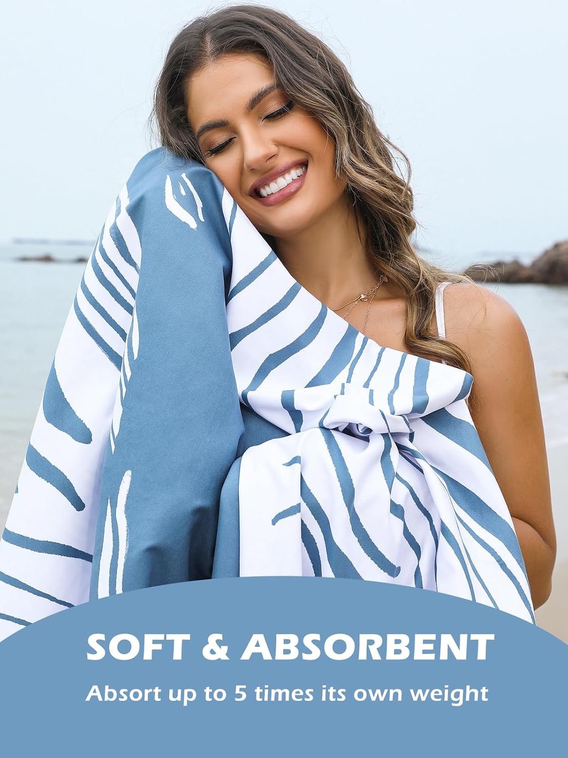 FAST DRYING & SUPER ABSORBENT: After a swim, wrap yourself in this soft, absorbent, and fluffy beach towel. It dries 3x faster than regular towels and is perfect for various sports activities. Made of smooth microfiber, it quickly soaks up water, leaving your skin dry and ready to go without any unpleasant damp odors