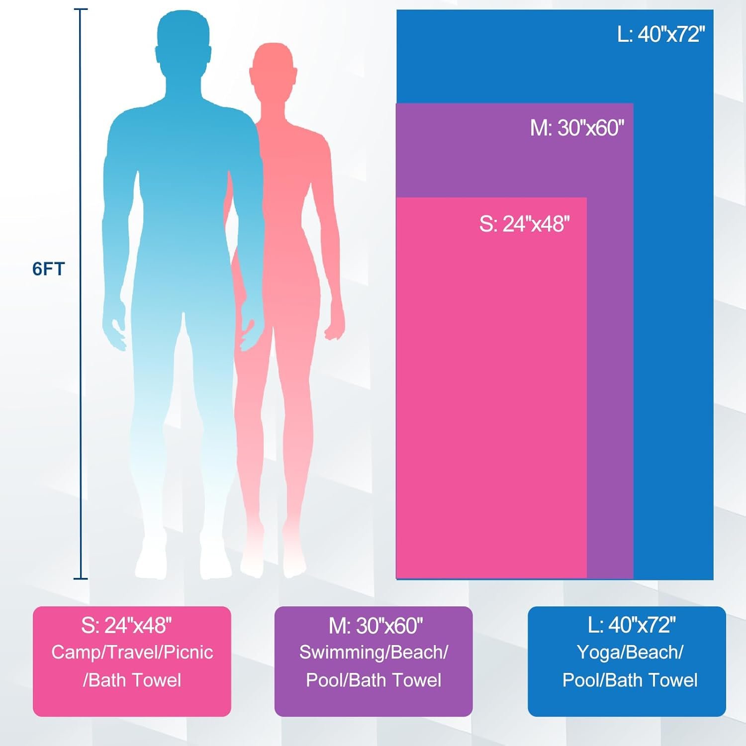 ULTRA-SOFT FEEL: Each microfiber travel towel is crafted from premium material with smooth qualities akin to satin, offering a soft, smooth, and comfortable feel on your skin. It is super absorbent, odor-resistant, and remains fresh after drying.
