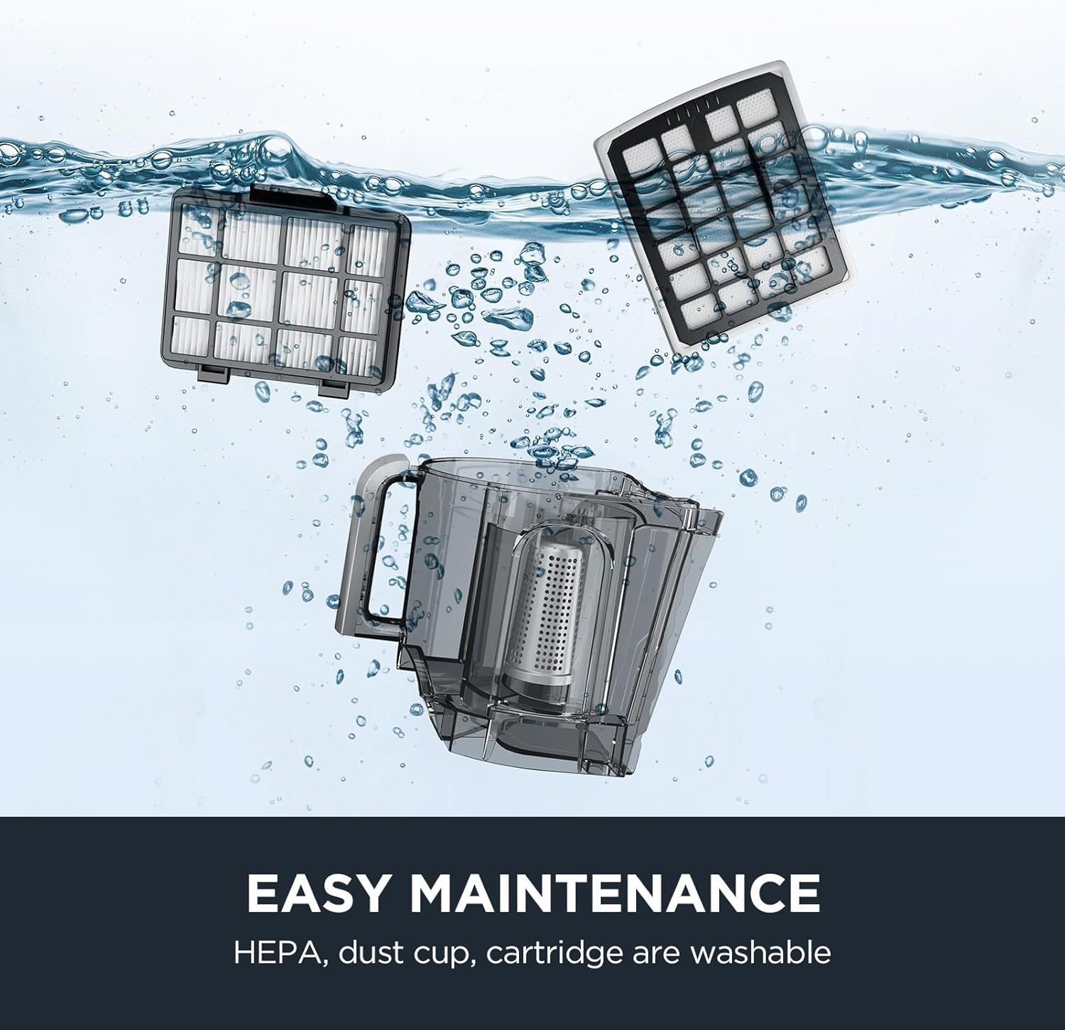EASY MAINTENANCE: NEN180 bagless canister vacuum cleaner comes with large 2-liter dust cup, providing ample capacity for extended cleaning sessions. The filter and dust cup of this vacuum cleaner for home can be washed directly with water, making daily maintenance more convenient and provides no extra consumables and no additional costs.