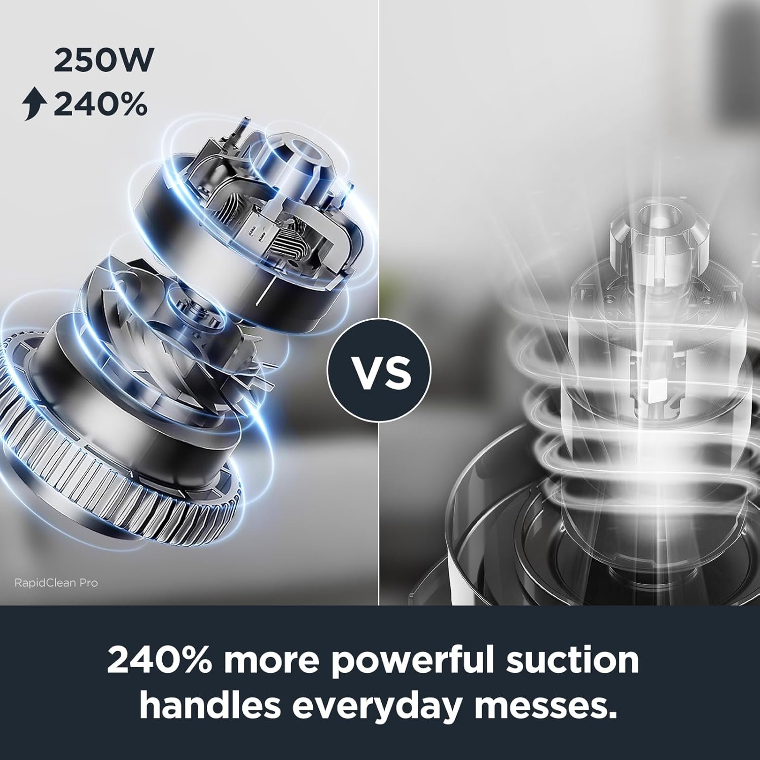 Powerful Suction with Advanced Motor: Equipped with a 250W brushless digital motor, delivering 240% more suction power compared to previous models, ensuring deep cleaning on various surfaces.