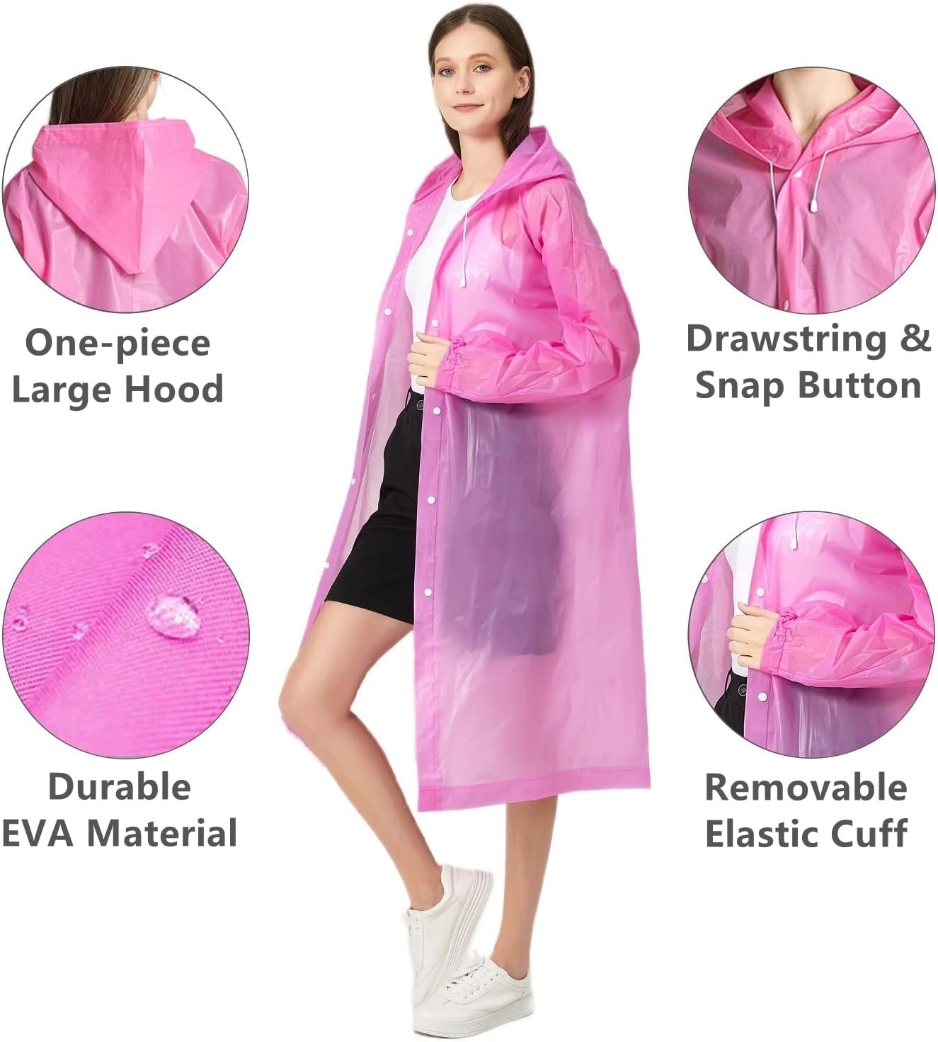 Our rain ponchos are made of high quality EVA material, which is lightweight, durable, and 100% waterproof. They are designed to protect you from rain, snow and wind, making them ideal for outdoor activities such as hiking, camping, cycling, fishing and more.