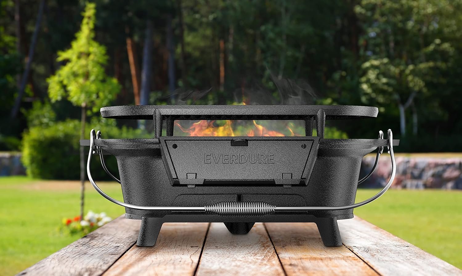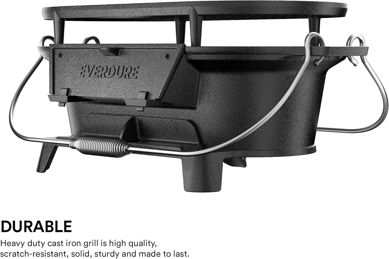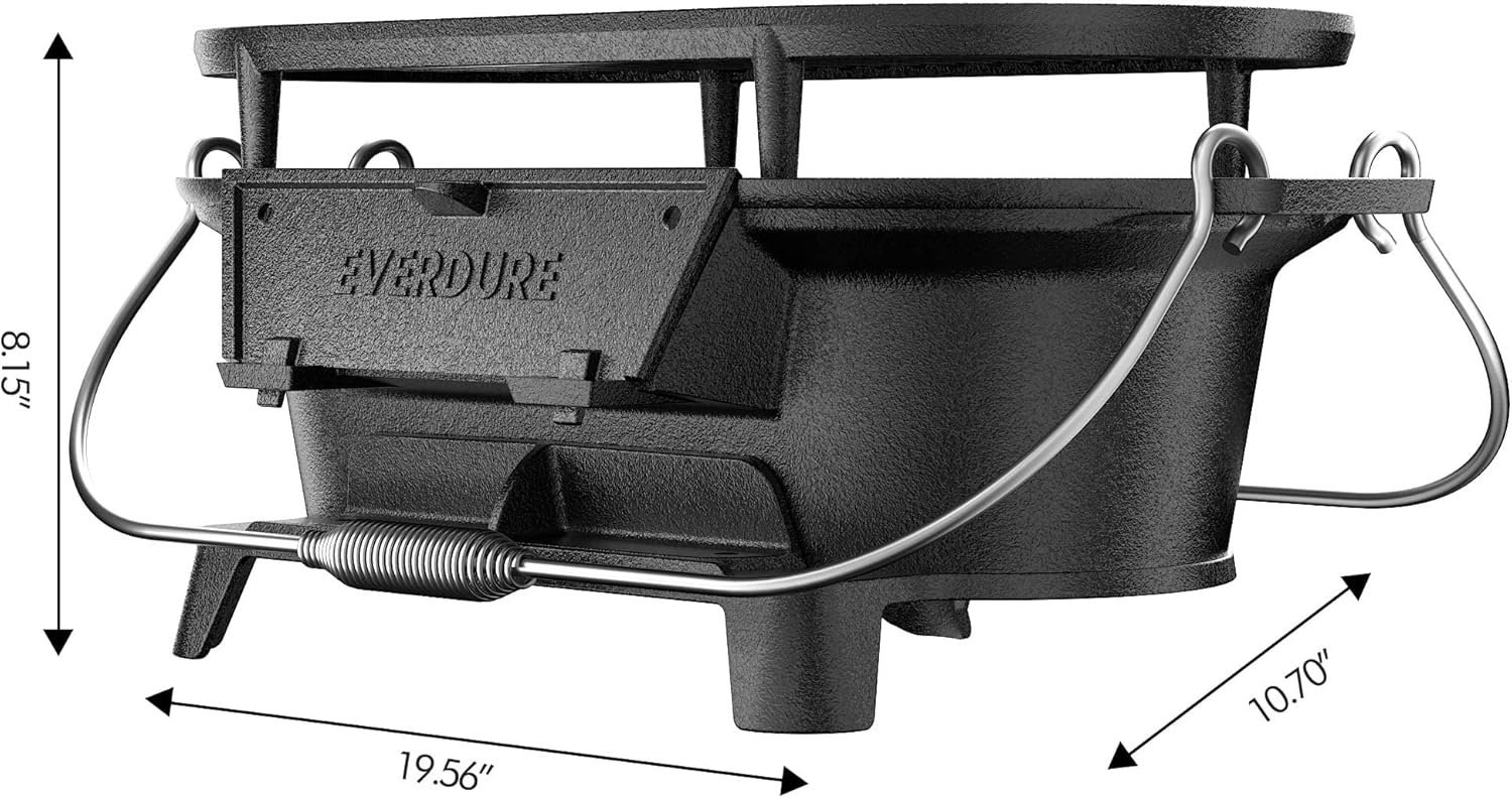 Everdure Oval Cast Iron Grill & Cover – Outdoor, Portable Charcoal Grill and Tabletop Cast Iron Skillet – 100% Cast Iron, Enameled, Durable, Small Charcoal Grill, Camping Stove, Hibachi Grill