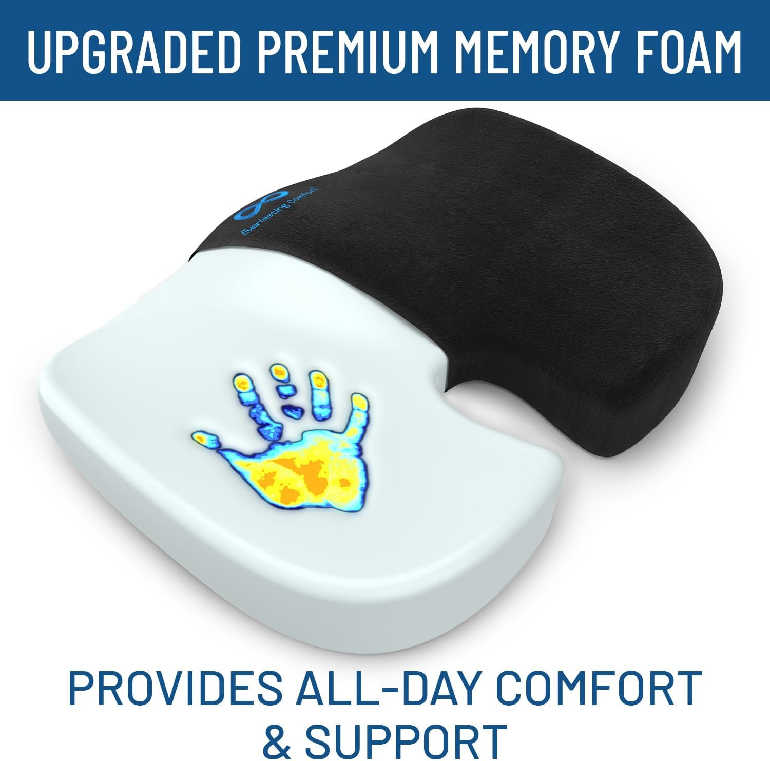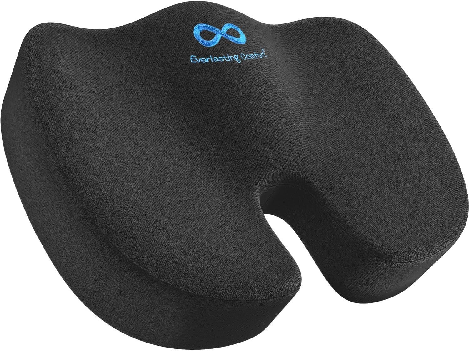 Everlasting Comfort Doctor Recommended Memory Foam Seat Cushion for Office Chairs & Car Seat – Ergonomic Office Desk Accessories for Tailbone Pain Relief, Sciatica & Back Support