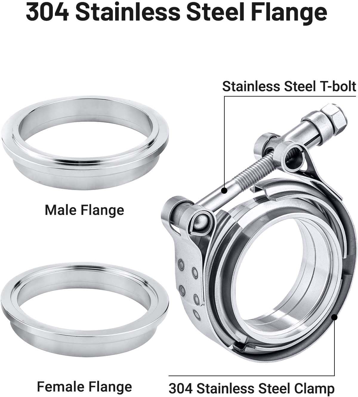 [Size] Joins male/female flange 3.0″ ID to 3.0″ pipe. T-Bolt thread size: M8*1.25.