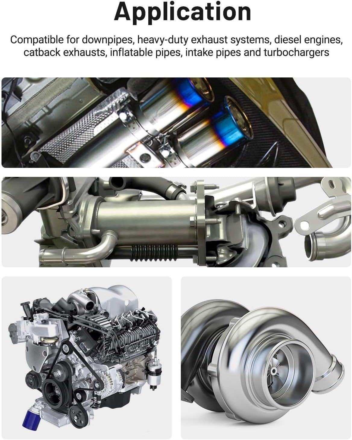 [Application] Compatible for exhaust system, turbocharger, downpipe, muffler etc.