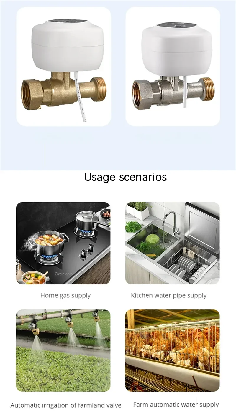 Timing control: Through the APP, you can set three methods: timing, delay, and cycle timing. For example, close the valve at home at 7:30 a.m. during working hours.The valve will automatically open when returning home at 17:30.