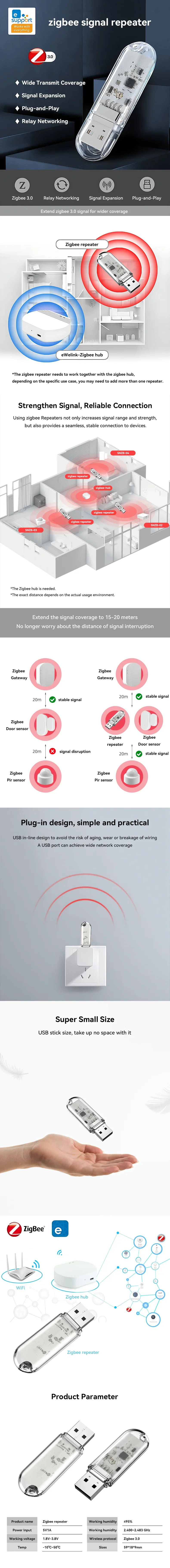 eWeLink APP Zigbee Repeateras USB Signal Amplifier Extender Signal Repeater Full House Coverage Smart Home Singal Extension Plug