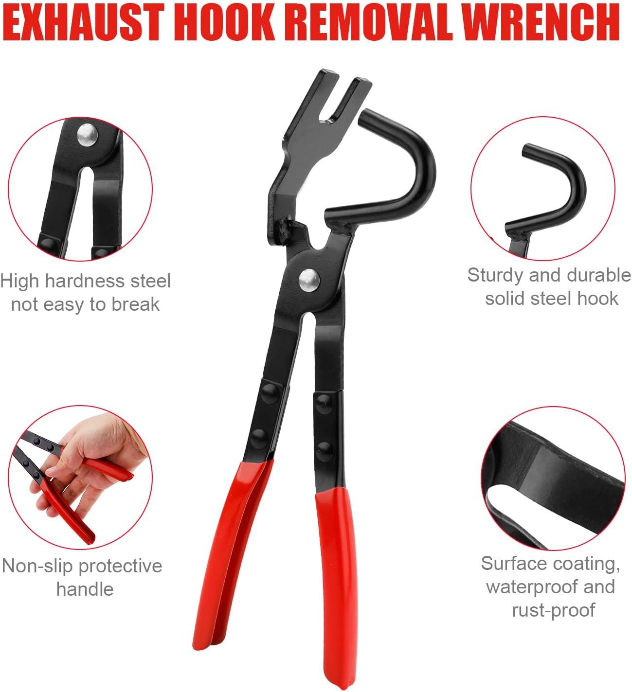 Premium Material: These exhaust hanger tools are made of great quality carbon steel and rubber, rubber exhaust hangers are made of premium rubber. They are durable and sturdy, anti-slip and watertight, not easy to break or damage.