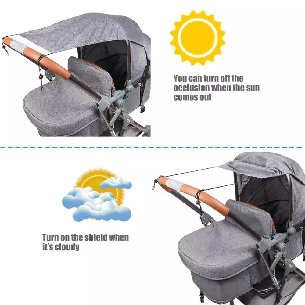 Extended Baby Stroller Sunshade Cover Sunscreen Breathable Baby Pram Canopy Anti-UV Lightweight Pushchair Visor Outdoor