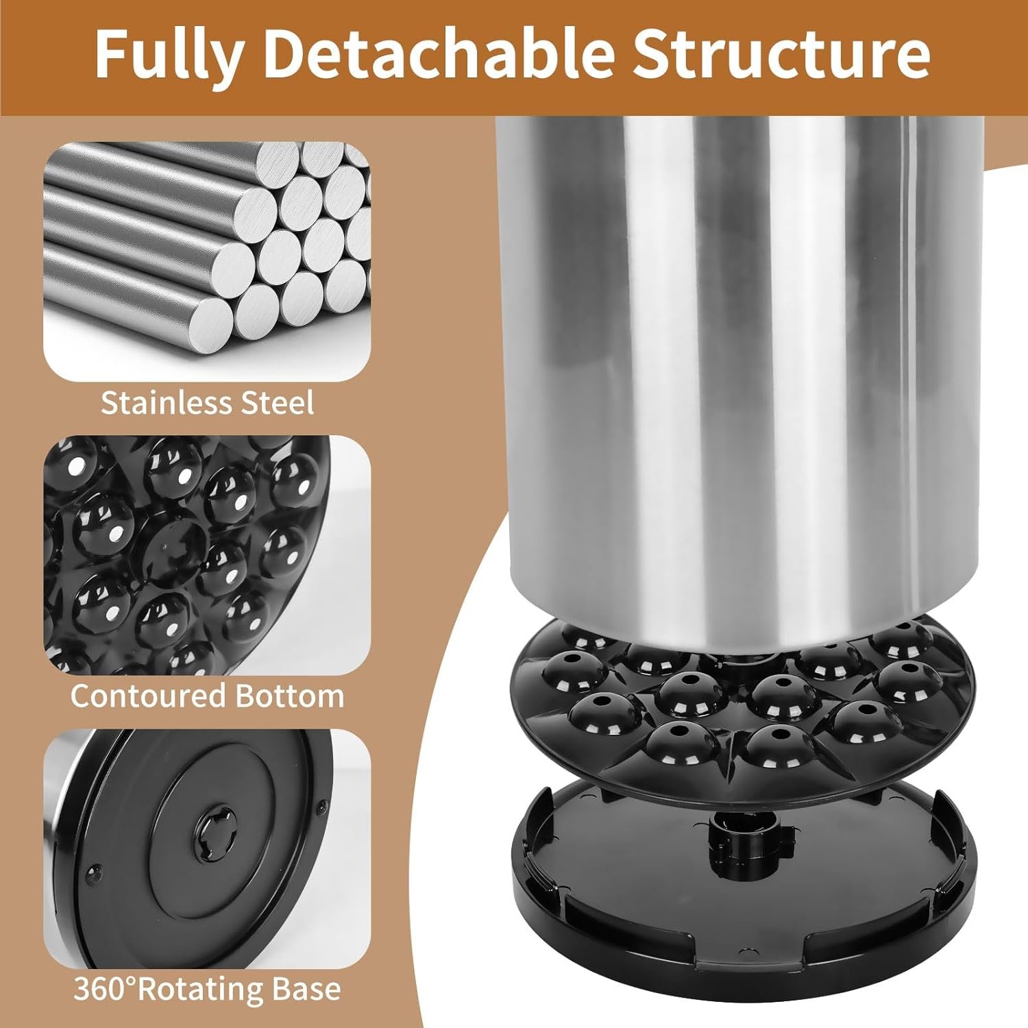 Quick Drainage: The inside of the stainless steel utensil holder is equipped with a porous drainage layer, which keeps the cookware standing steadily and also allows excess moisture to drain quickly to the spout at the very bottom of the flatware organizer for quick drying. Note: The dividers and clamping inserts are removable