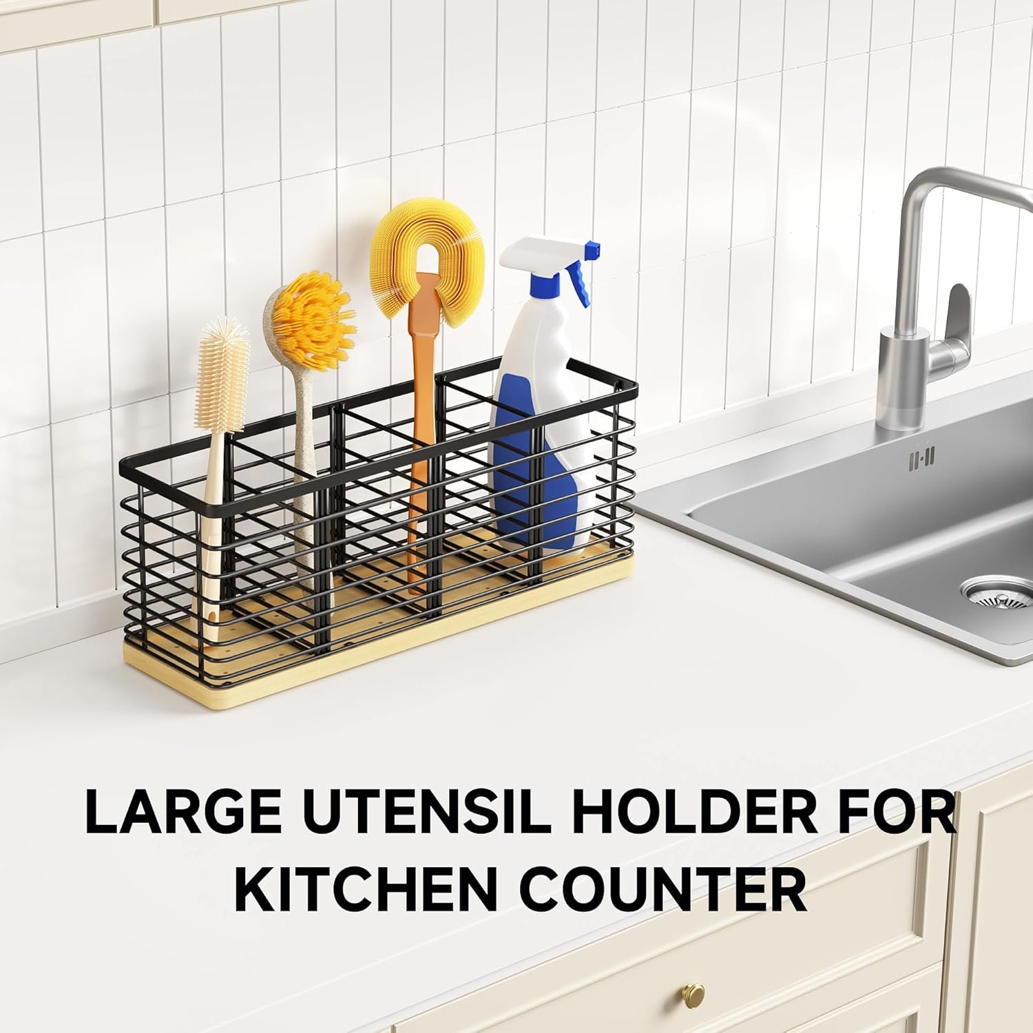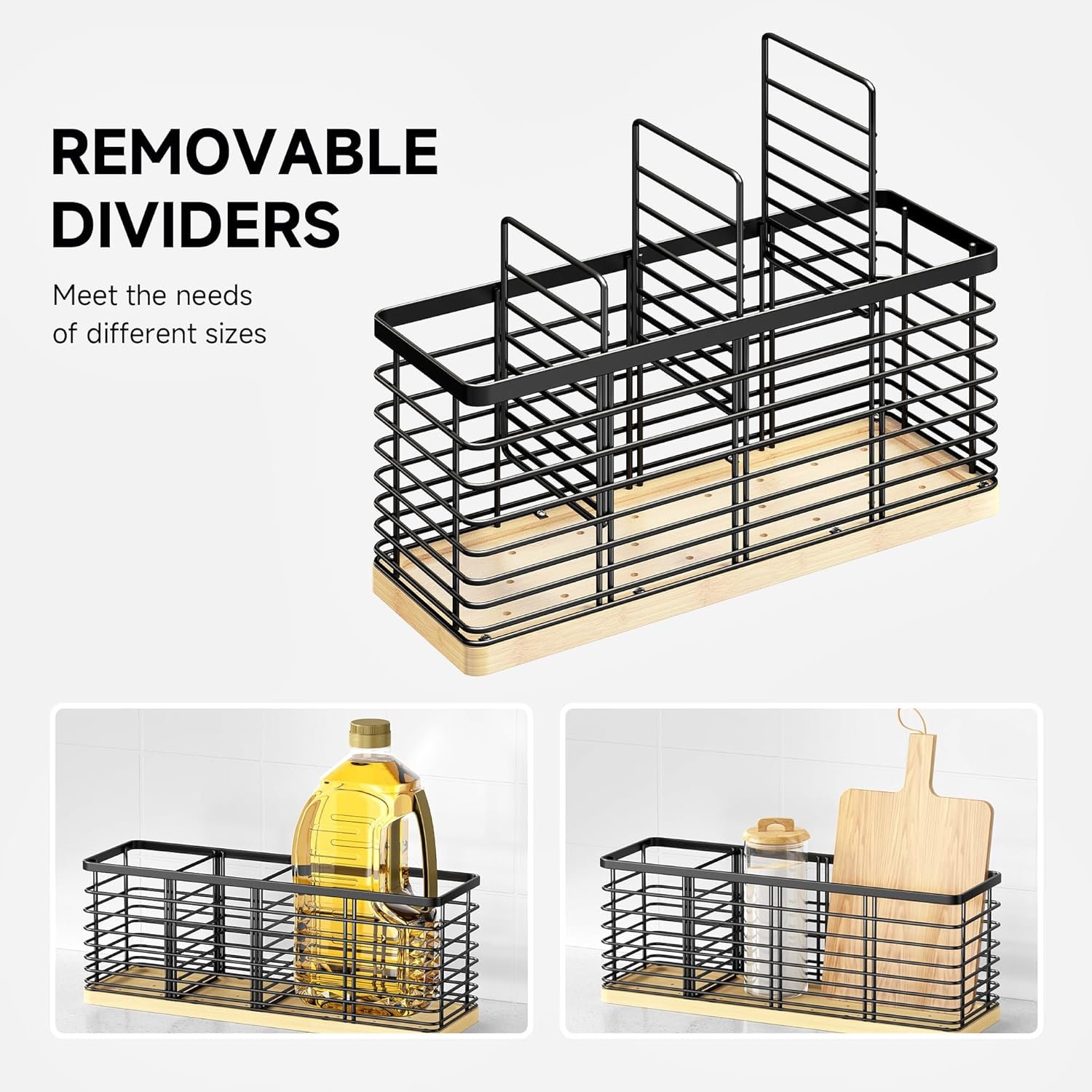 Removable Dividers: Utensil holder has 3 removable dividers, suitable for various storage needs. Remove the partition to make it one large compartment for holding cleaning brushes, spice bottles, coffee pods, snacks, and more. It provides a variety of options to meet the needs of different sizes
