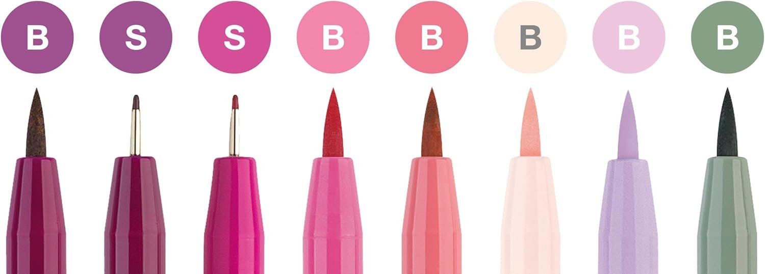 PINK AND RED BRUSH PENS – This hand lettering color assortment features a variety of shades of pinks and reds, perfect for floral illustrations and letterings. Add a pop of color to your modern calligraphy designs with Faber-Castell Pitt Artist Pens