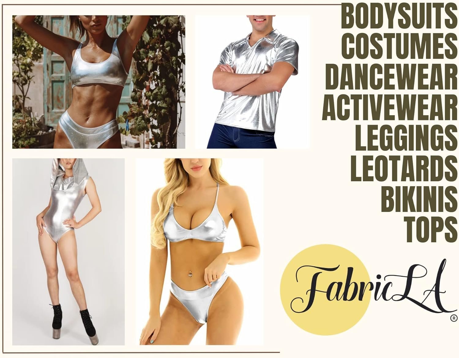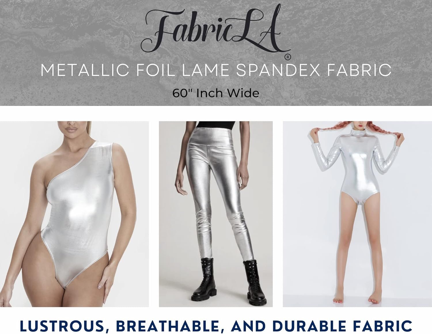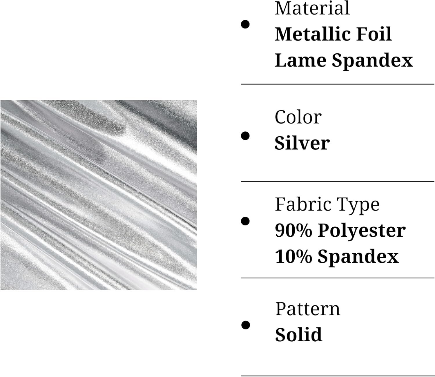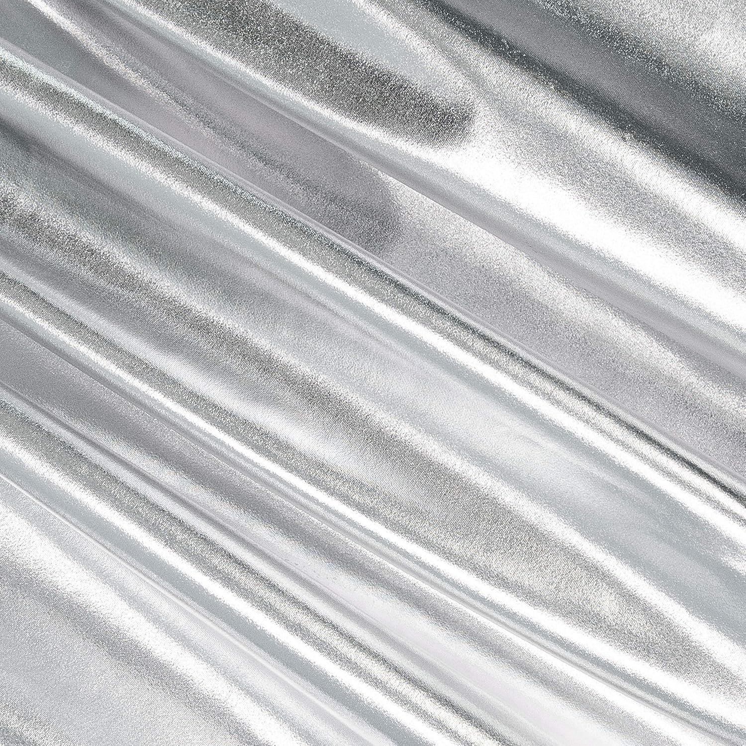 FabricLA | Silver Polyester Fabric | Metallic Foil Lame Spandex Material | 4-Way Stretch Knit Fabric | 60″ Inches Wide | Polyester Fabric by The Yard for Dancewear, Costumes & Decoration – 2 Yards