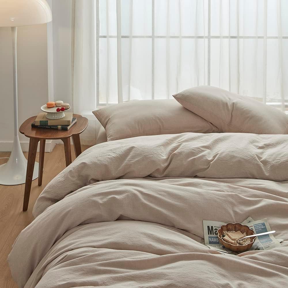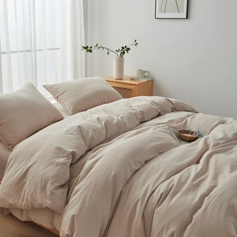 I love these sheets, so much so that this is actually the 3rd set i’ve bought from this seller. quality is really great and you really do get a linen look while still having that 100% cotton feel. the only thing i will say is, i bought the tannish grey colour and was a little disappointed to see the colour was almost indistinguishable from the “pink” i have now. i still love them but if you are looking for a true tan/beige colour this one is more orange
