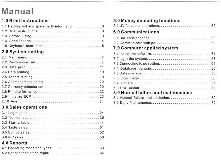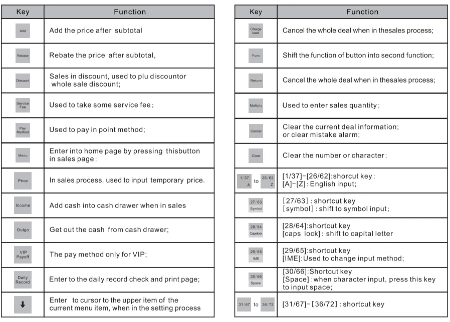 Sales functions 72 shortcuts, 7000 a single product, package 50, 1000 Member,
