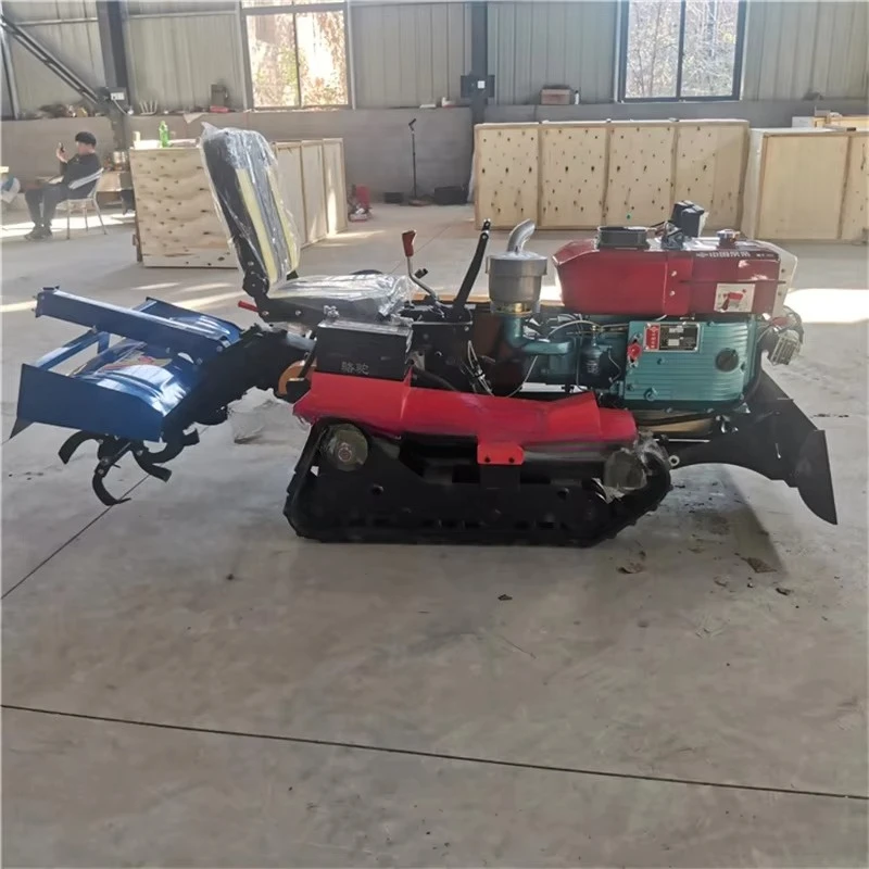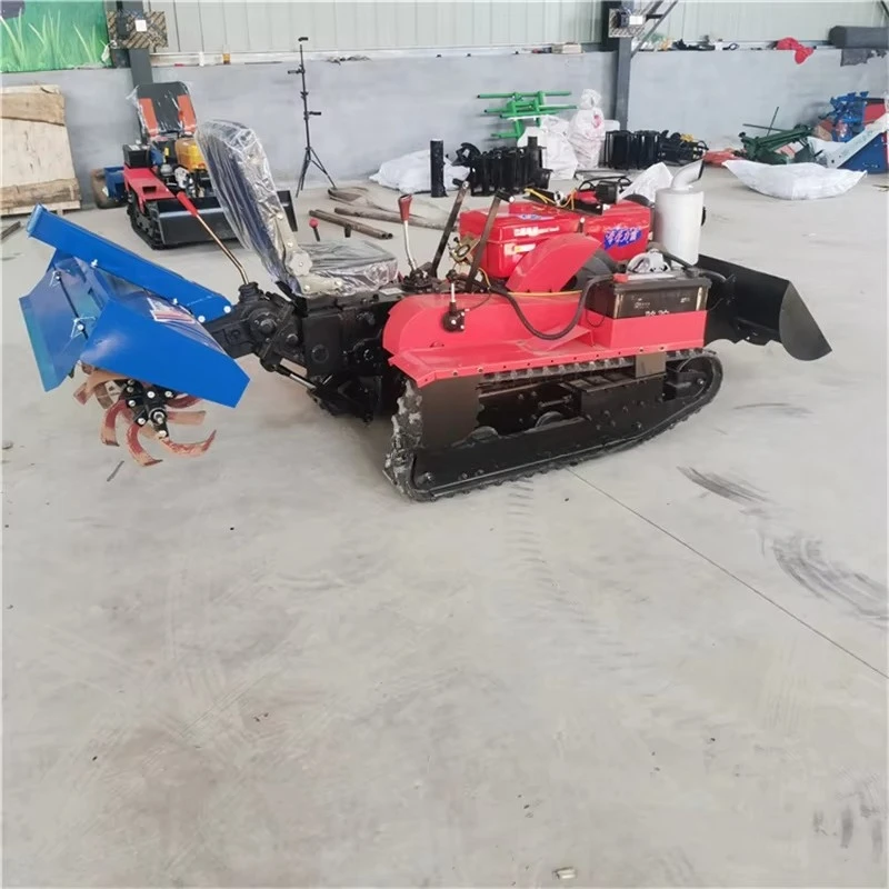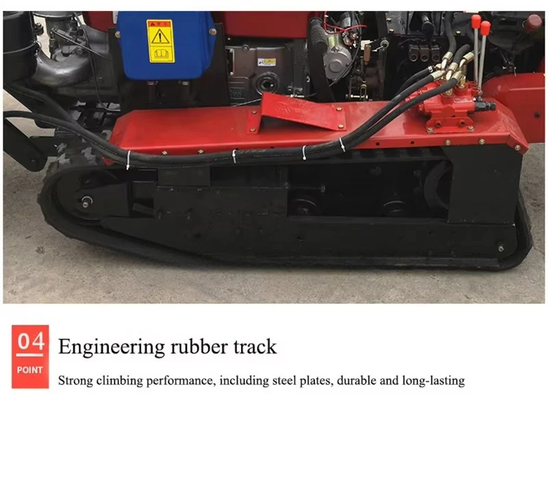 The track is composed of rubber, steel wire, and iron skeleton, with a large adhesion area, which enhances friction and does not cause rollover problems. It can be equipped with various agricultural tools, with one machine for multiple purposes.