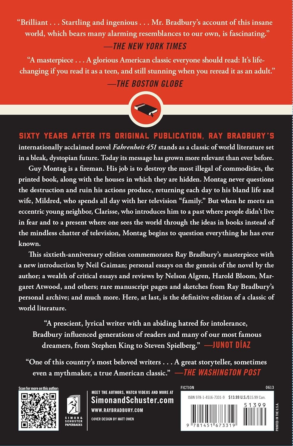 Nearly seventy years after its original publication, Ray Bradbury’s internationally acclaimed novel Fahrenheit 451 stands as a classic of world literature set in a bleak, dystopian future. Today its message has grown more relevant than ever before.