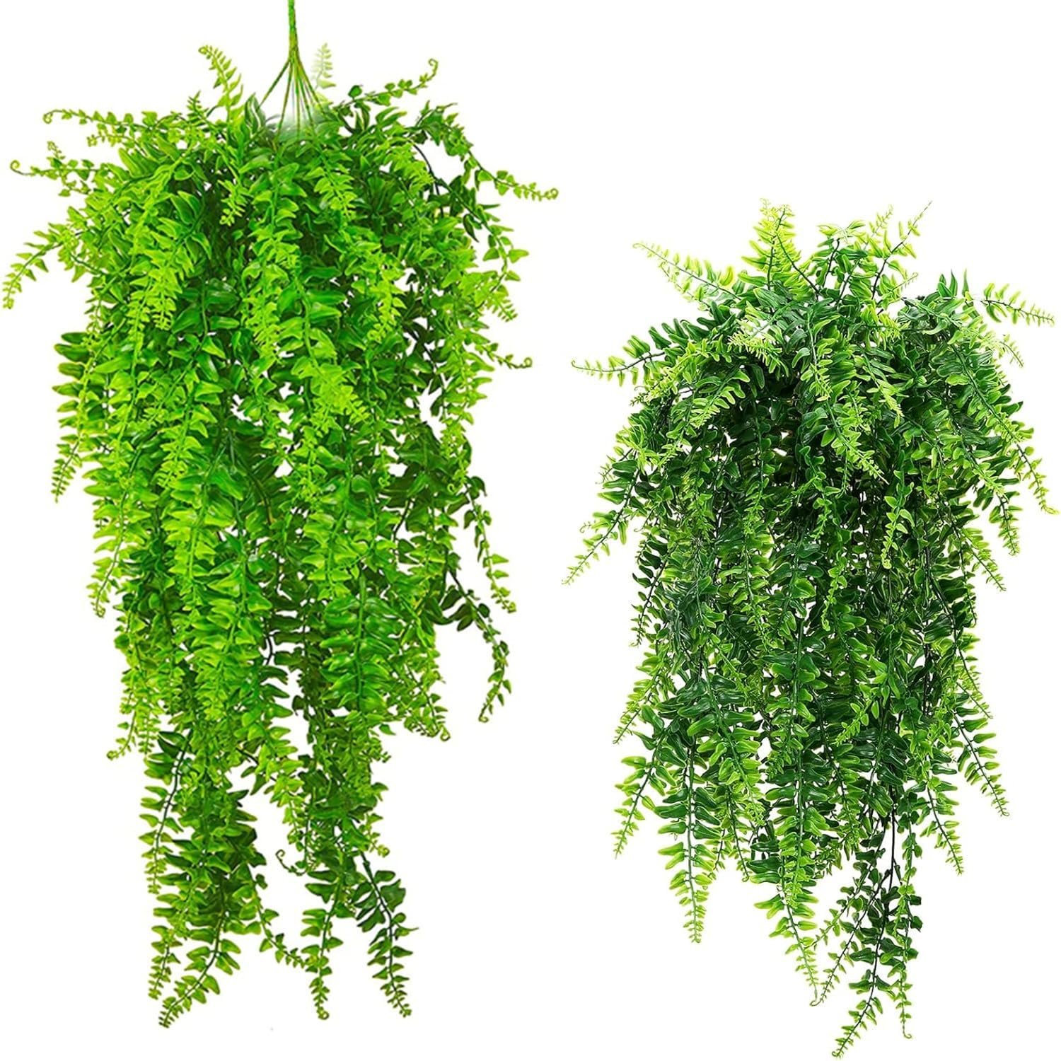 Fake Fern Artificial Hanging Ferns Outdoor Faux Hanging Greenery Plant Indoor UV Resistant Plastic Plants for Wall, Wedding Party, Holiday Decor-2Pcs