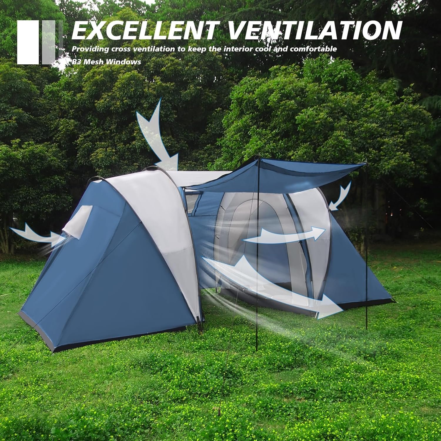 Multifunctional Porch Tent: Enjoy a luxurious 70% more outdoor space than 4-person tents for camping! Step into a living area to unwind and store gear. Plus, it serves as an excellent sunshade canopy, providing ample shade on hot days with good ventilation and unobstructed views. Elevate your outdoor experience!