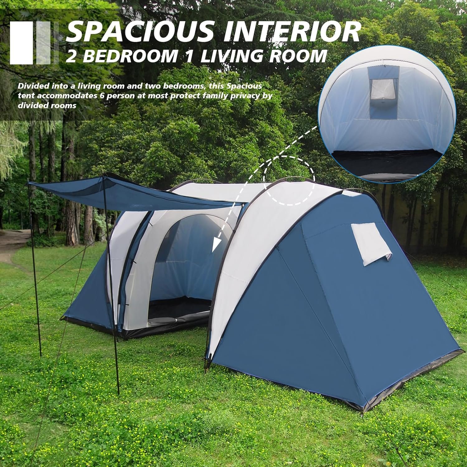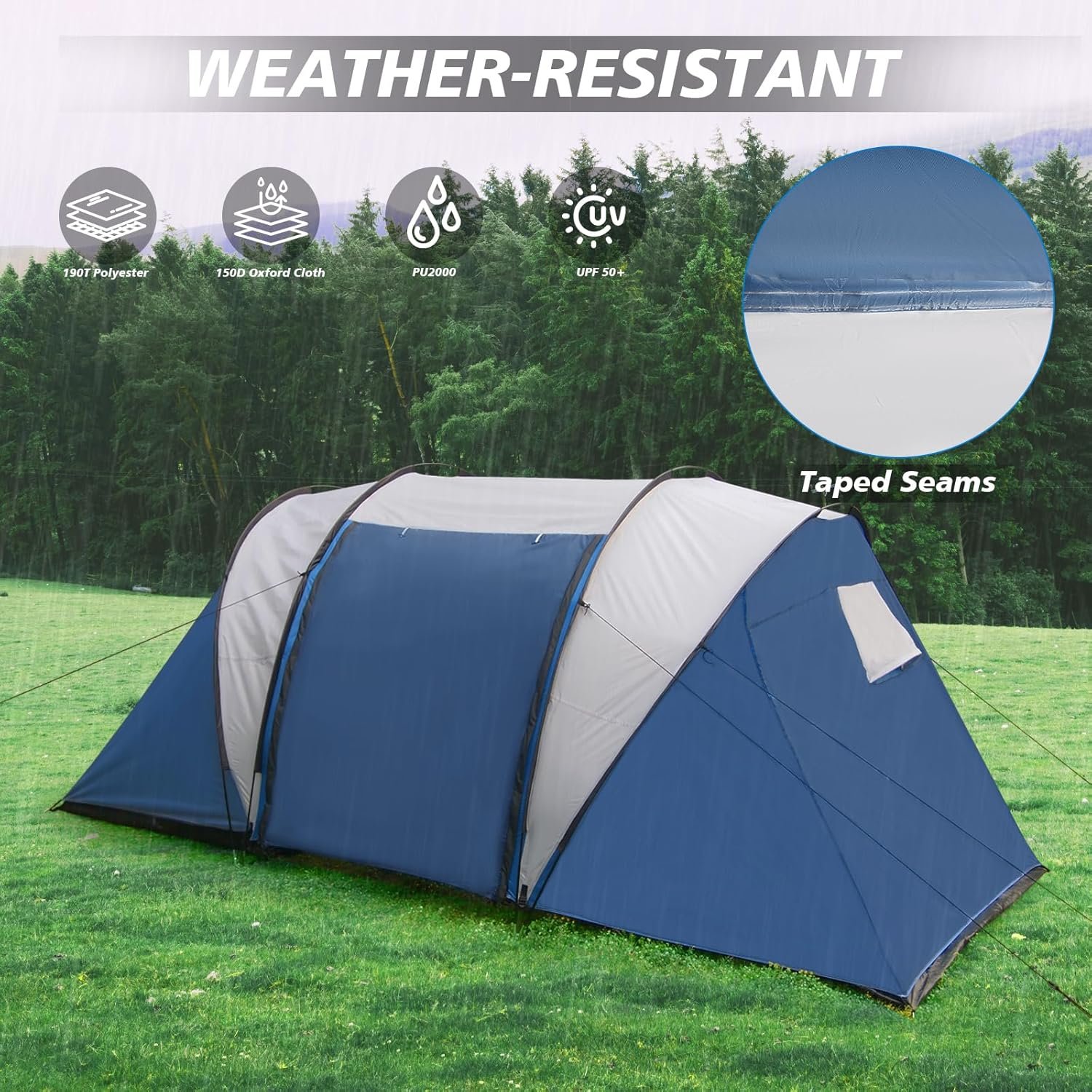 Weatherproof & Waterproof: Equipped with sturdy 190T polyester fabric, PU2000mm of superior waterproofing, fully taped sealed seams to ensure a dry and comfortable environment for your family. The included front porch provides extra water and weather protection. Sturdy fiberglass poles ensure stability for a long-lasting camping experience.