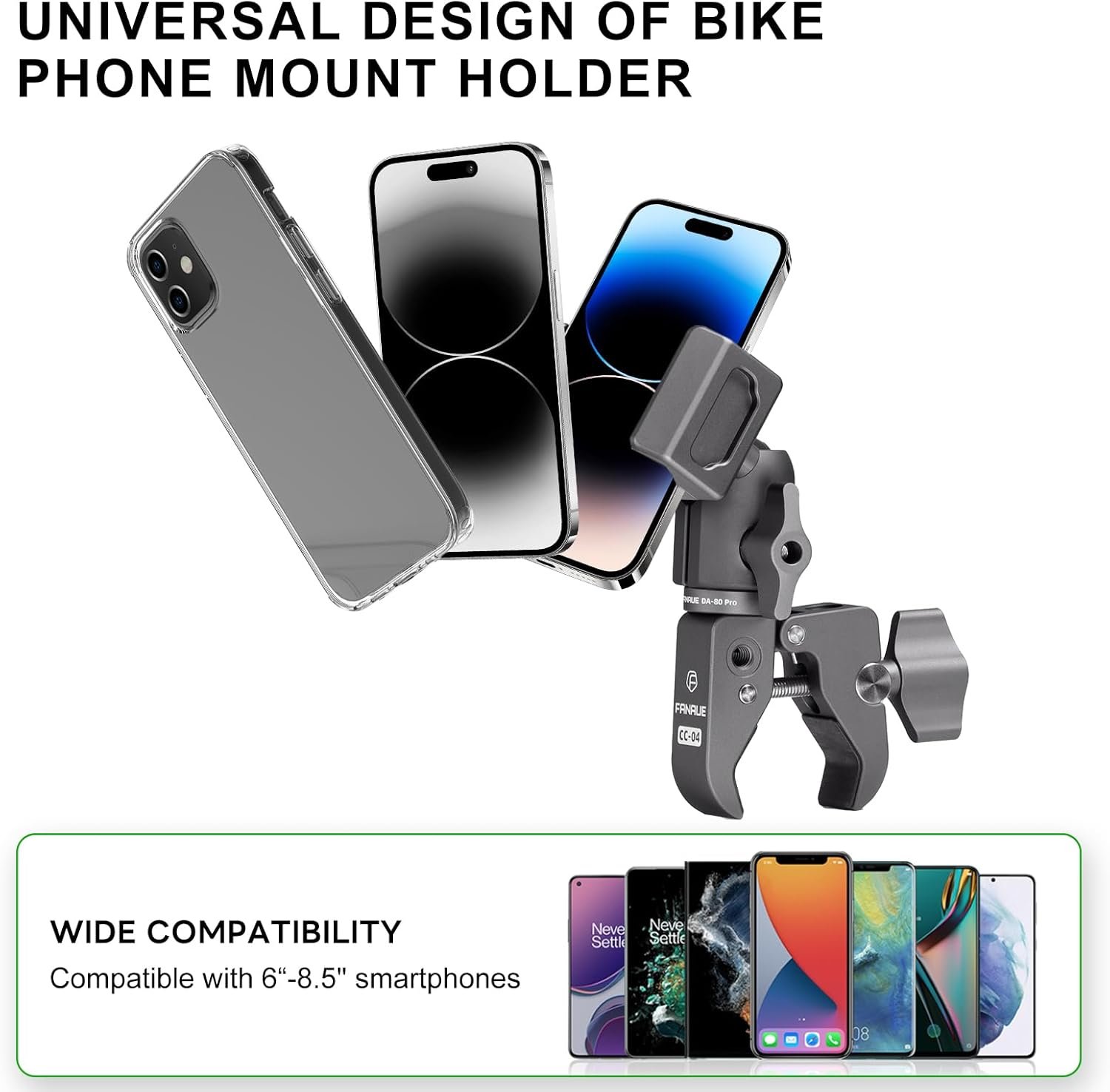 Wide compatibility:The phone holder with 1 inch ball head adapter can be used for bicycles, motorcycles, ATV/UTV, scooters, strollers, treadmills and other vehicles, suitable for 6-8.5 inch smartphones, support device thickness of 20mm, such as: like iPhone 15/ 14/ 13/ 12 Pro Max, iPhone 16 Pro, iPhone 16/ 15/ 14 Plus, iPhone Xs, Xs Max and more.