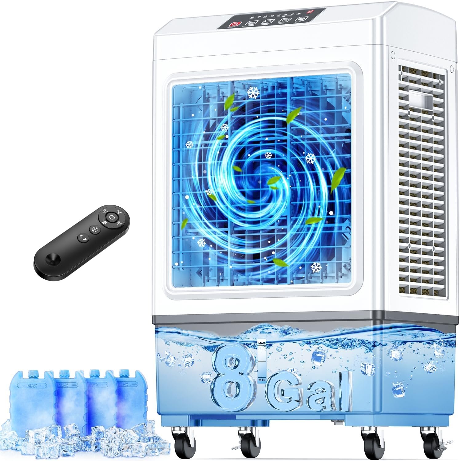 FANCOLE Windowless Air Conditioner, 2100CFM Evaporative Air Cooler with 4 Ice Packs, 700 Sq.ft Swamp Cooler Air Conditioner No Windows Needed w/3Mode & 3Speed, 7H Timer & Remote for Room Garage Patio