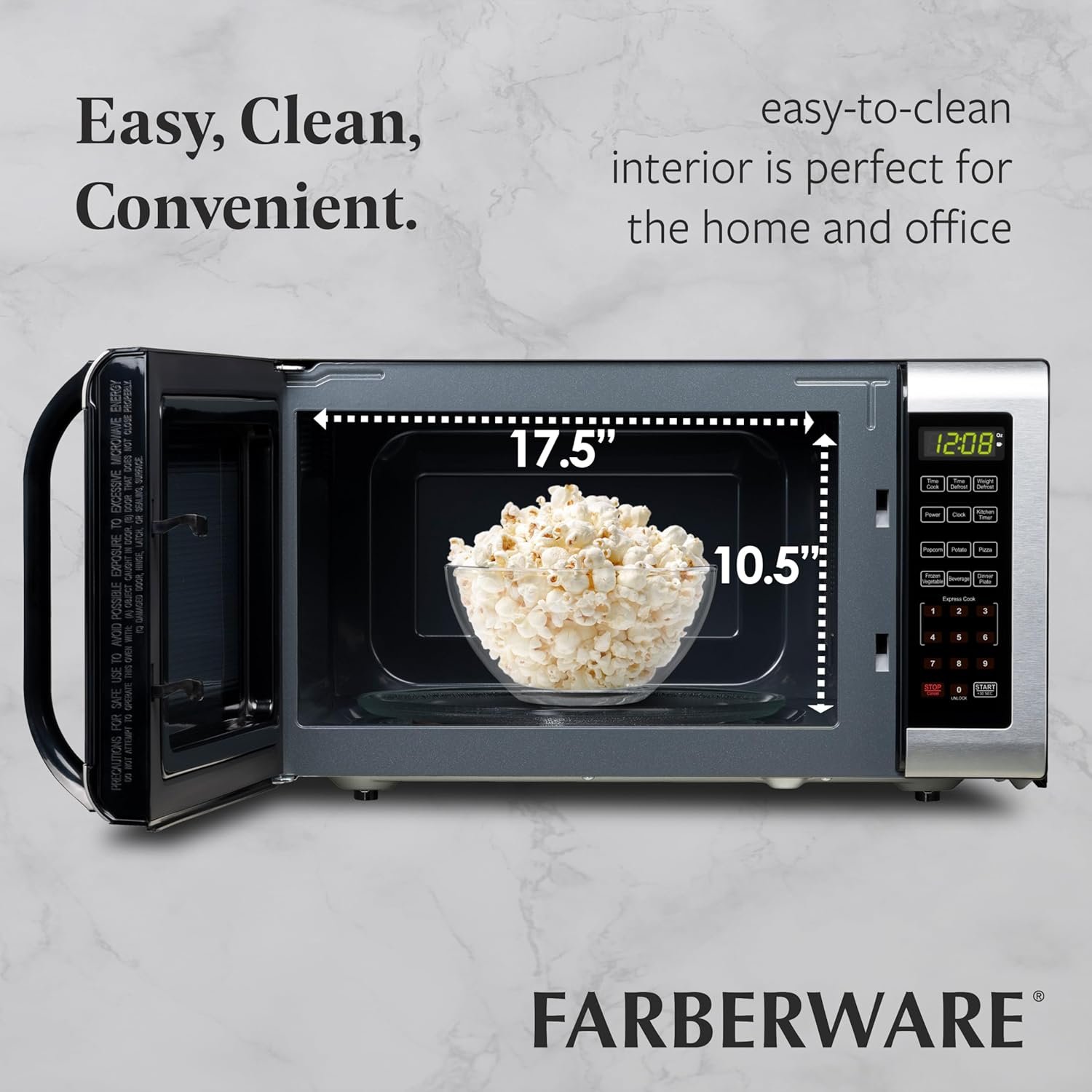 Farberware Countertop Microwave 1100 Watts, 1.6 Cu. Ft. – Microwave Oven With LED Lighting and Child Lock – Perfect for Apartments and Dorms – Easy Clean Stainless Steel