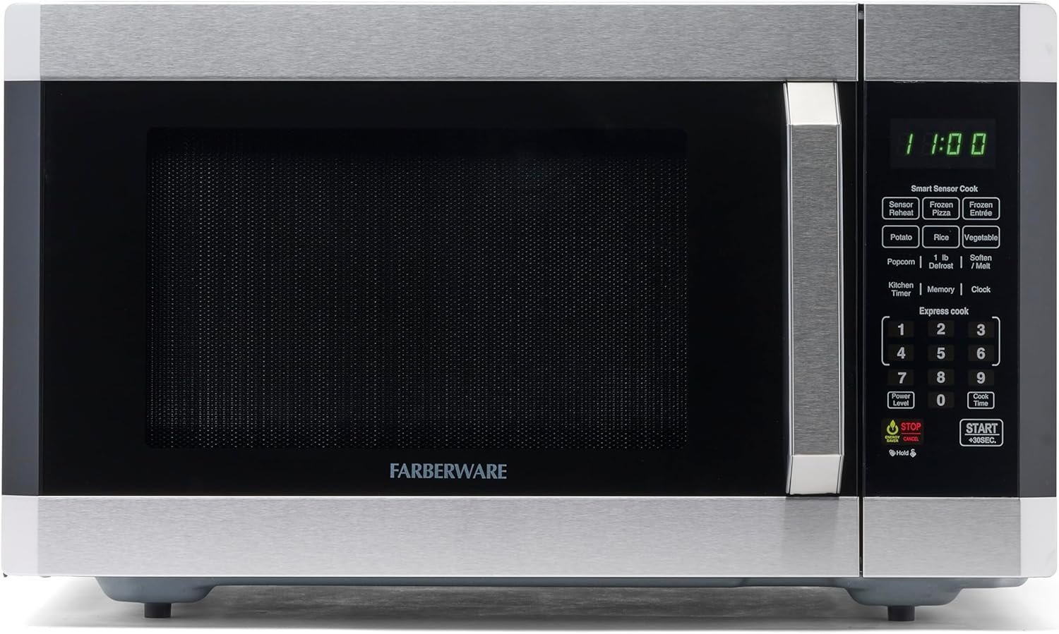Farberware Countertop Microwave 1100 Watts, 1.6 cu ft – Smart Sensor Microwave Oven With LED Lighting and Child Lock – Perfect for Apartments and Dorms – Easy Clean – Stainless Steel