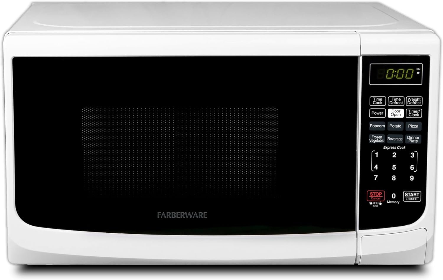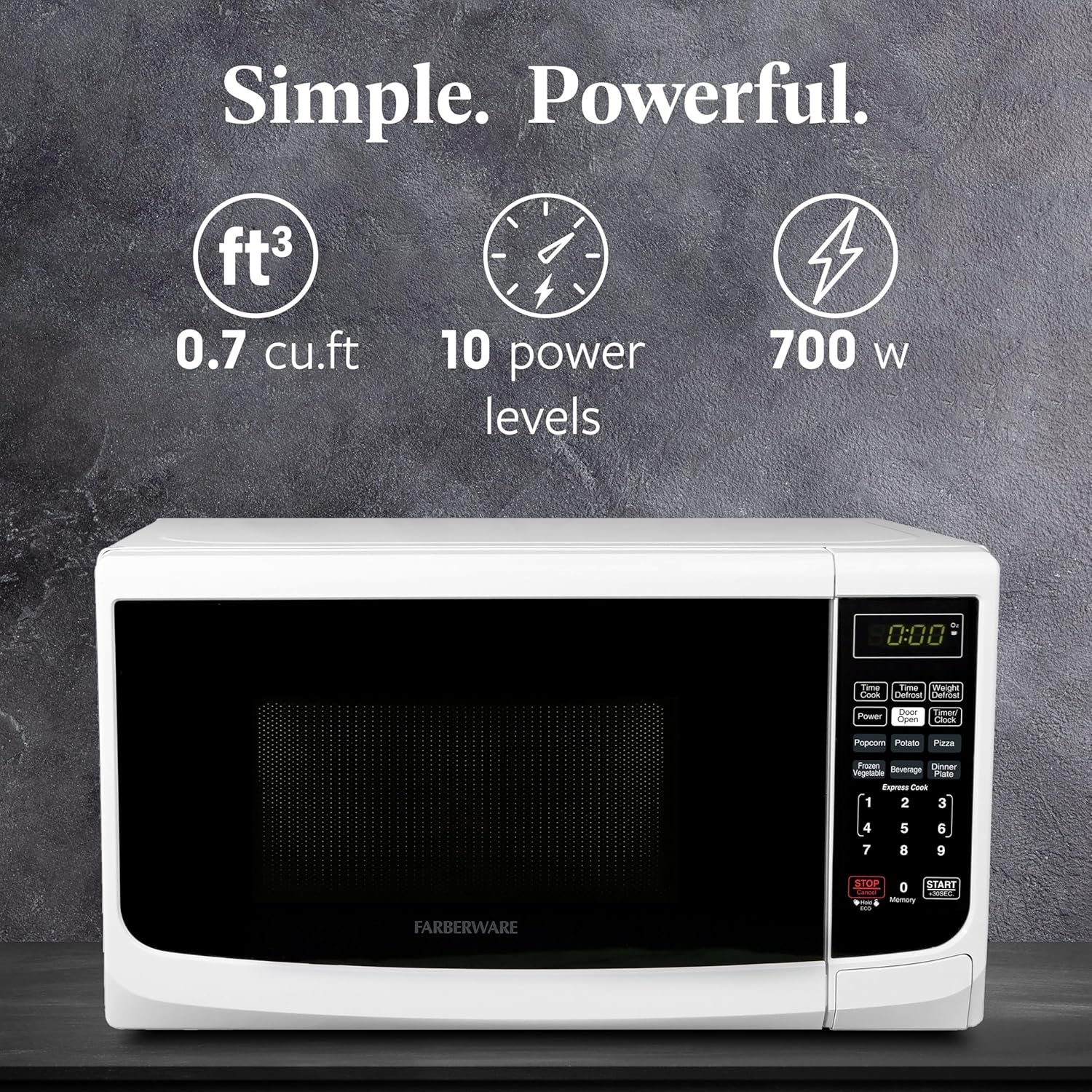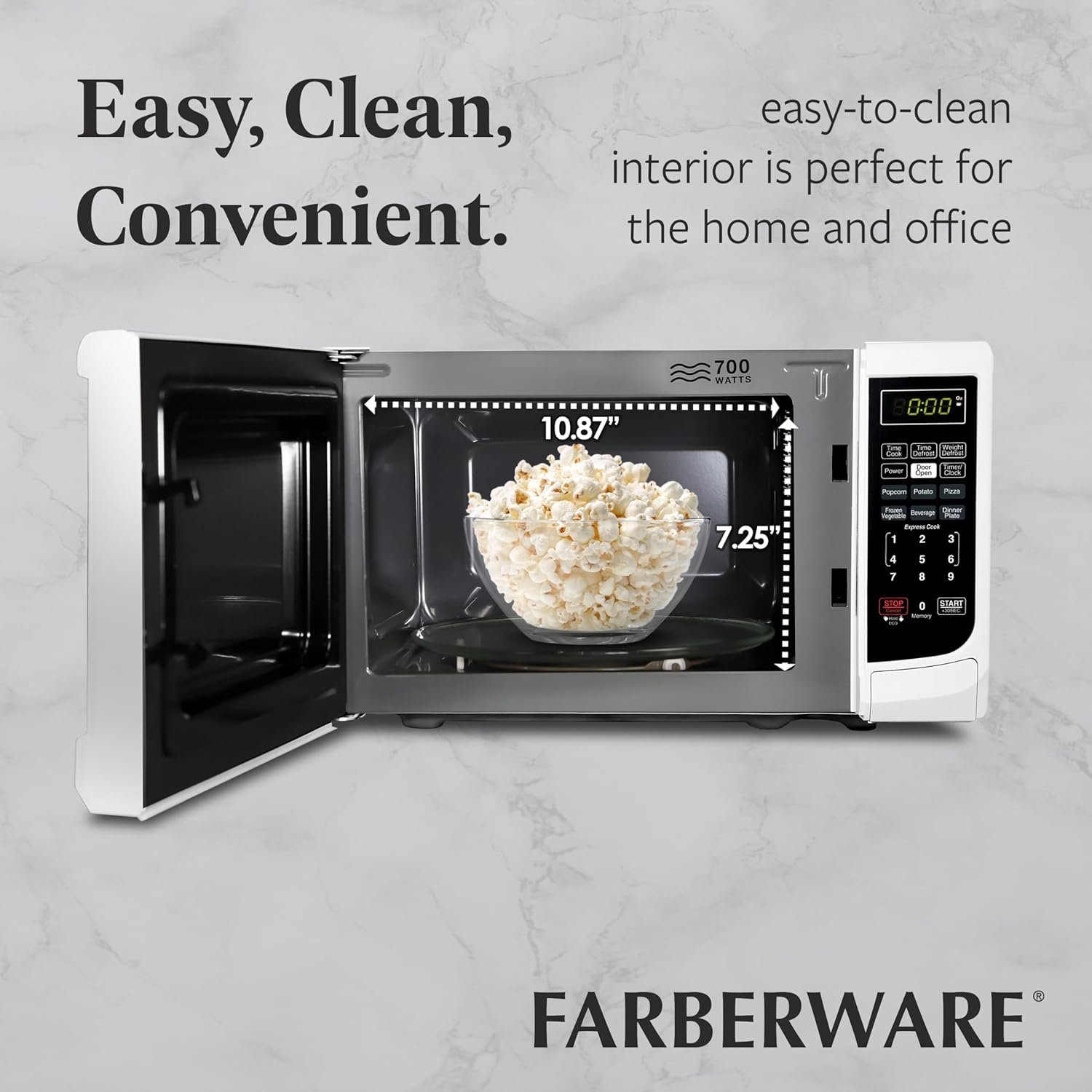 Farberware Countertop Microwave 700 Watts, Cu. Ft. – Microwave Oven With LED Lighting and Child Lock – Perfect for Apartments and Dorms – Easy Clean Grey Interior, Retro White