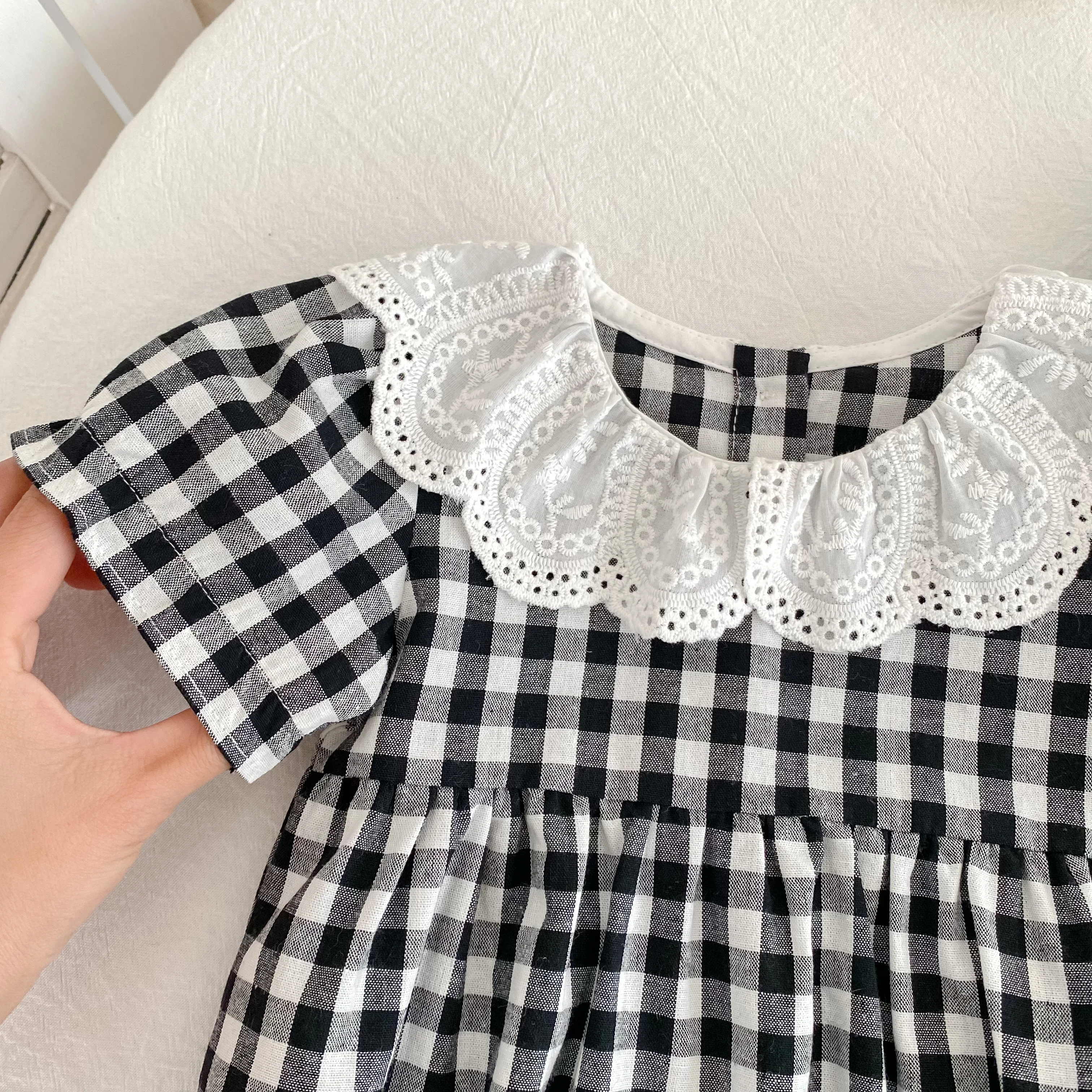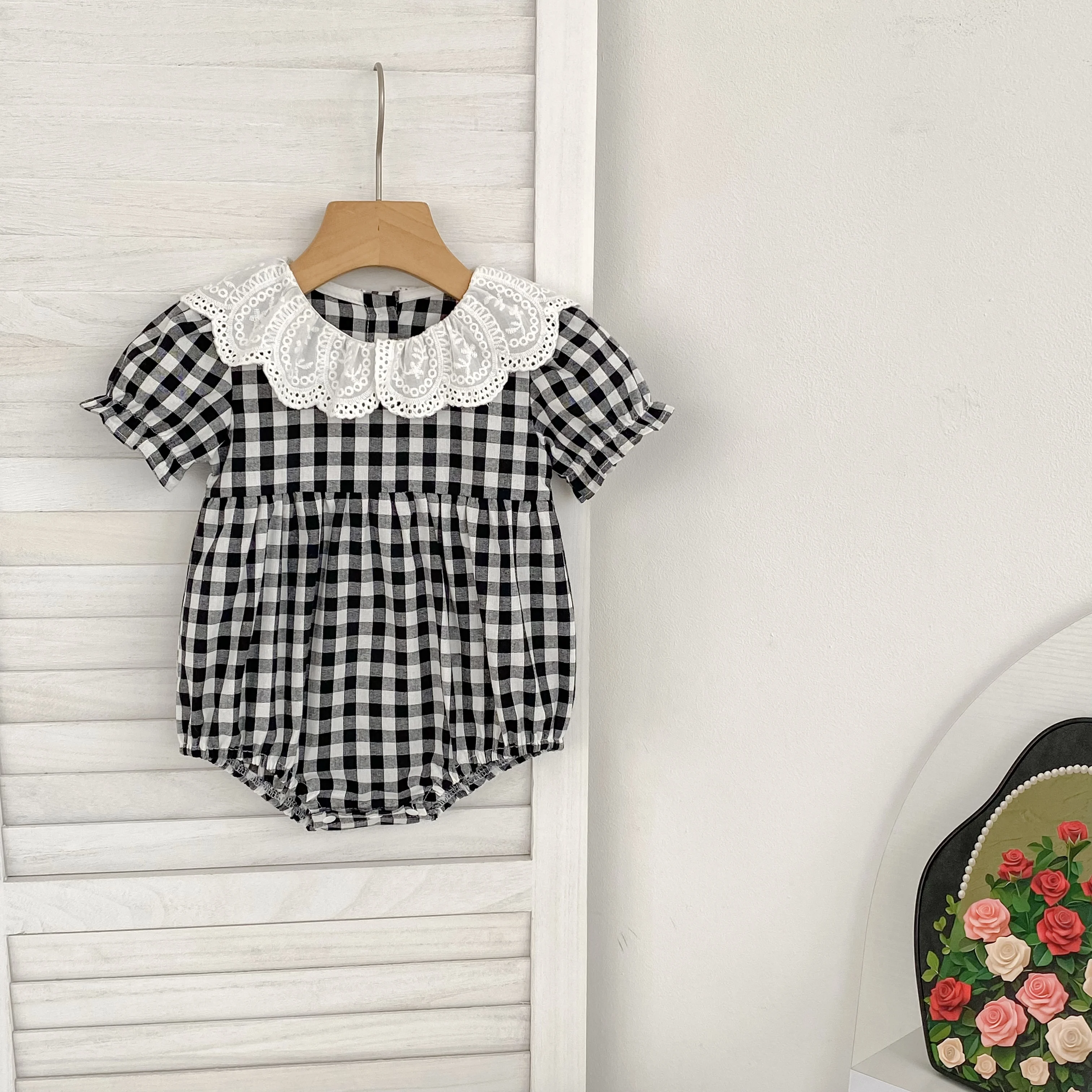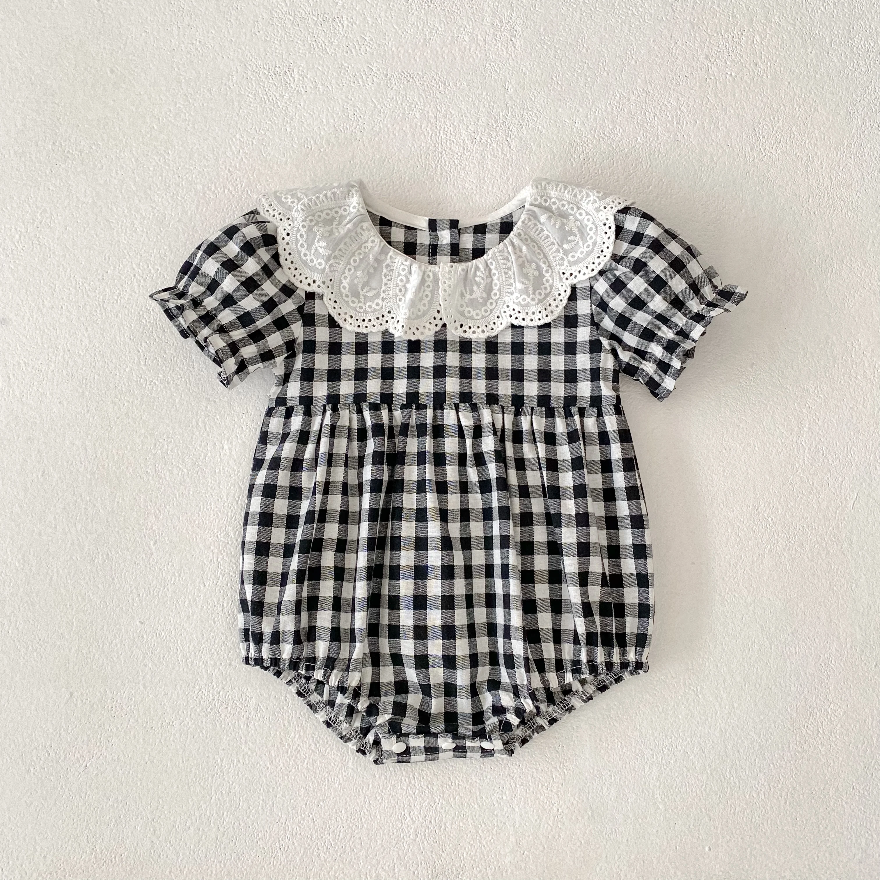 Fashion Clothing Summer Girls Jumpsuits Toddler Infant Baby Girl Short Sleeve Doll Collar Plaid Button Romper Jumpsuit Outfit