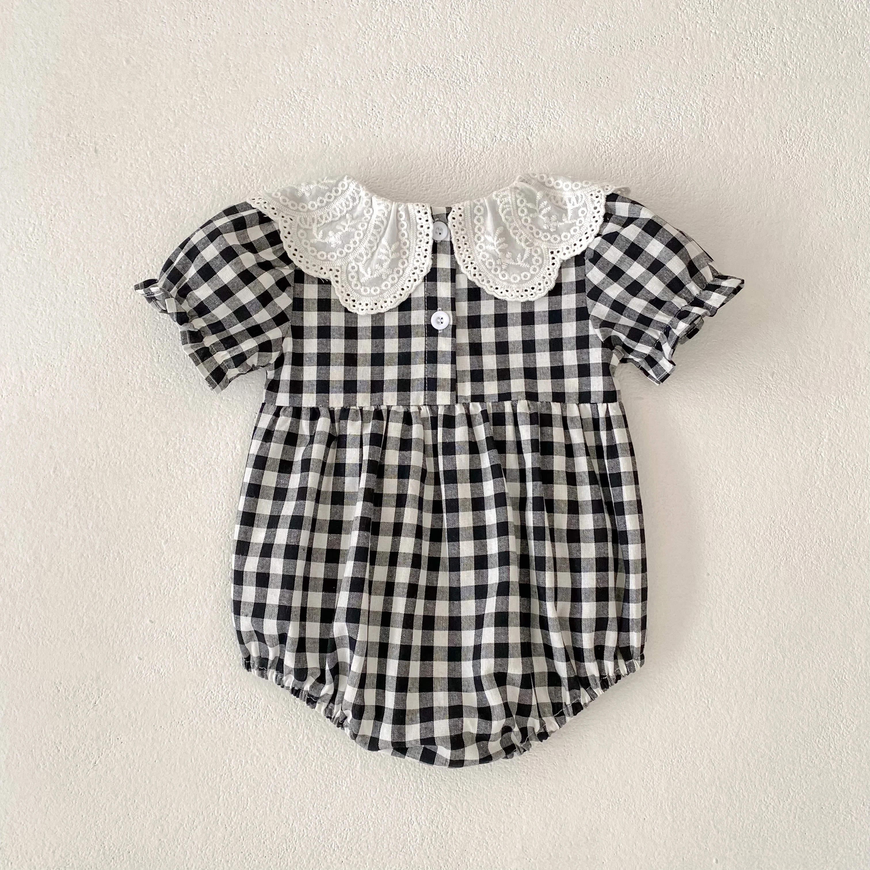 2 reviews for Fashion Clothing Summer Girls Jumpsuits Toddler Infant Baby Girl Short Sleeve Doll Collar Plaid Button Romper Jumpsuit Outfit