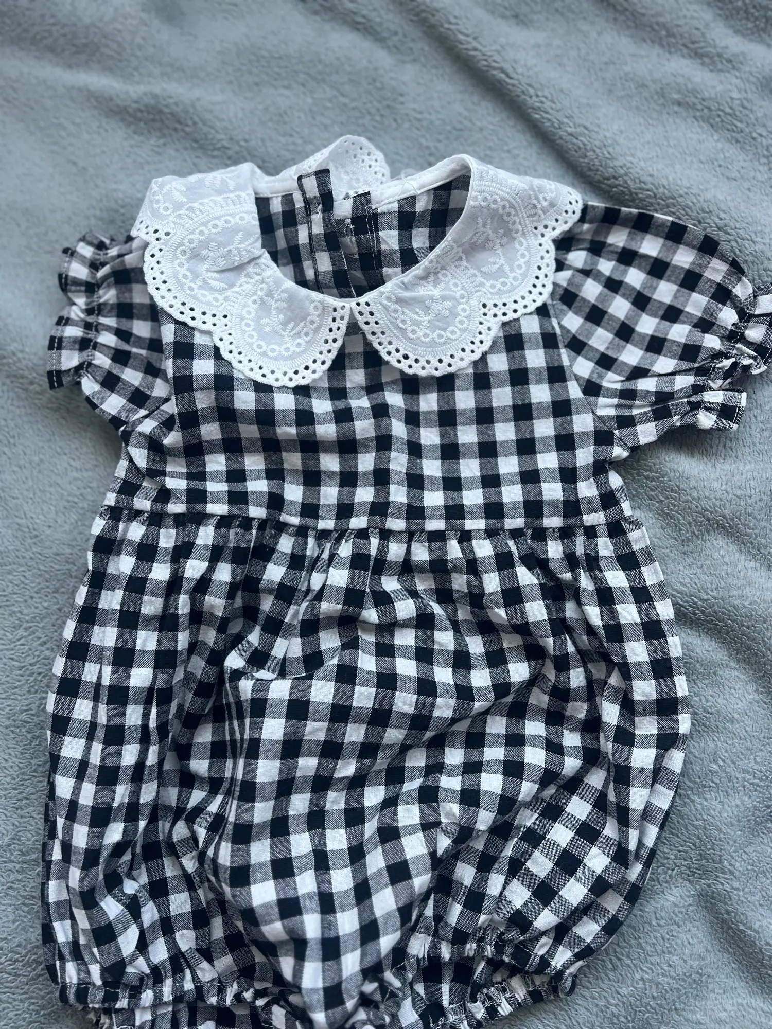 2 reviews for Fashion Clothing Summer Girls Jumpsuits Toddler Infant Baby Girl Short Sleeve Doll Collar Plaid Button Romper Jumpsuit Outfit
