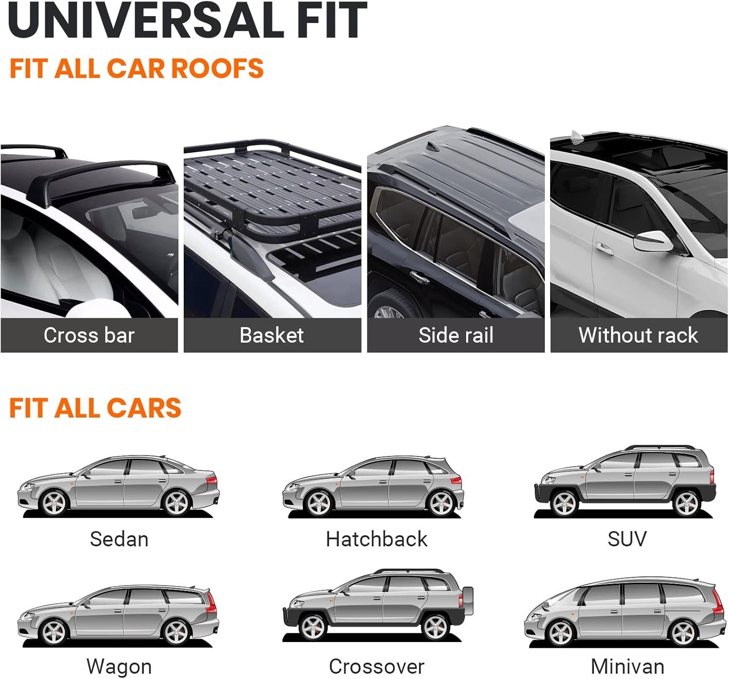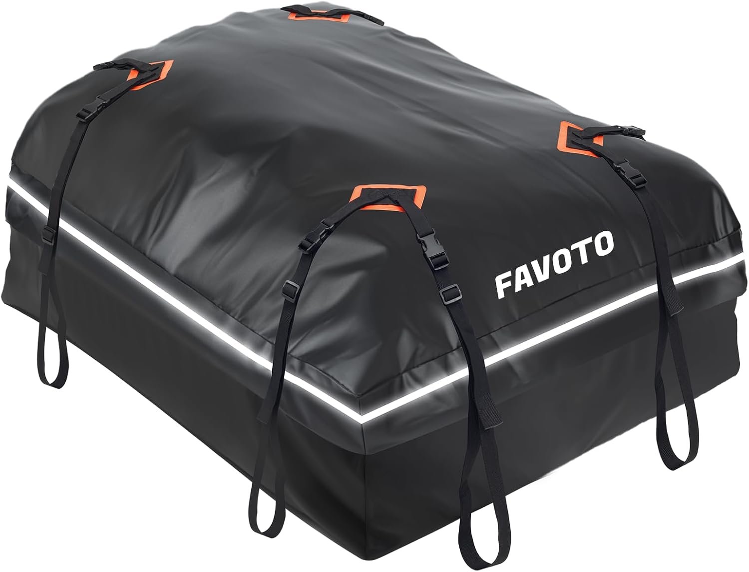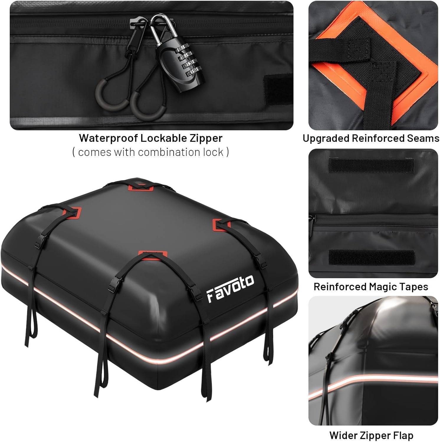 Universal Compatibility: The Favoto car roof bag is compatible with any car, truck, or SUV. Even if your vehicle doesn’t have roof side rails, it can be quickly installed on the roof rack using six door hooks within minutes.