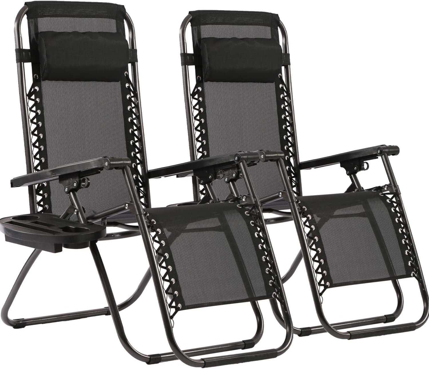 【Comfortable and with Cup Holder 】Very comfortable reclined position of the Zero Gravity Chairs and the headrest of the zero gravity recliner is easy to adjust.Each Patio Chair come with cup holder trays to place drinks, magazines, phones/tablets, or other small items for convenient accessibility.Lounge Patio Chairs Patio Lounge Chair zero gravity chair 2 pack zero gravity recliner Zero Gravity Chairs