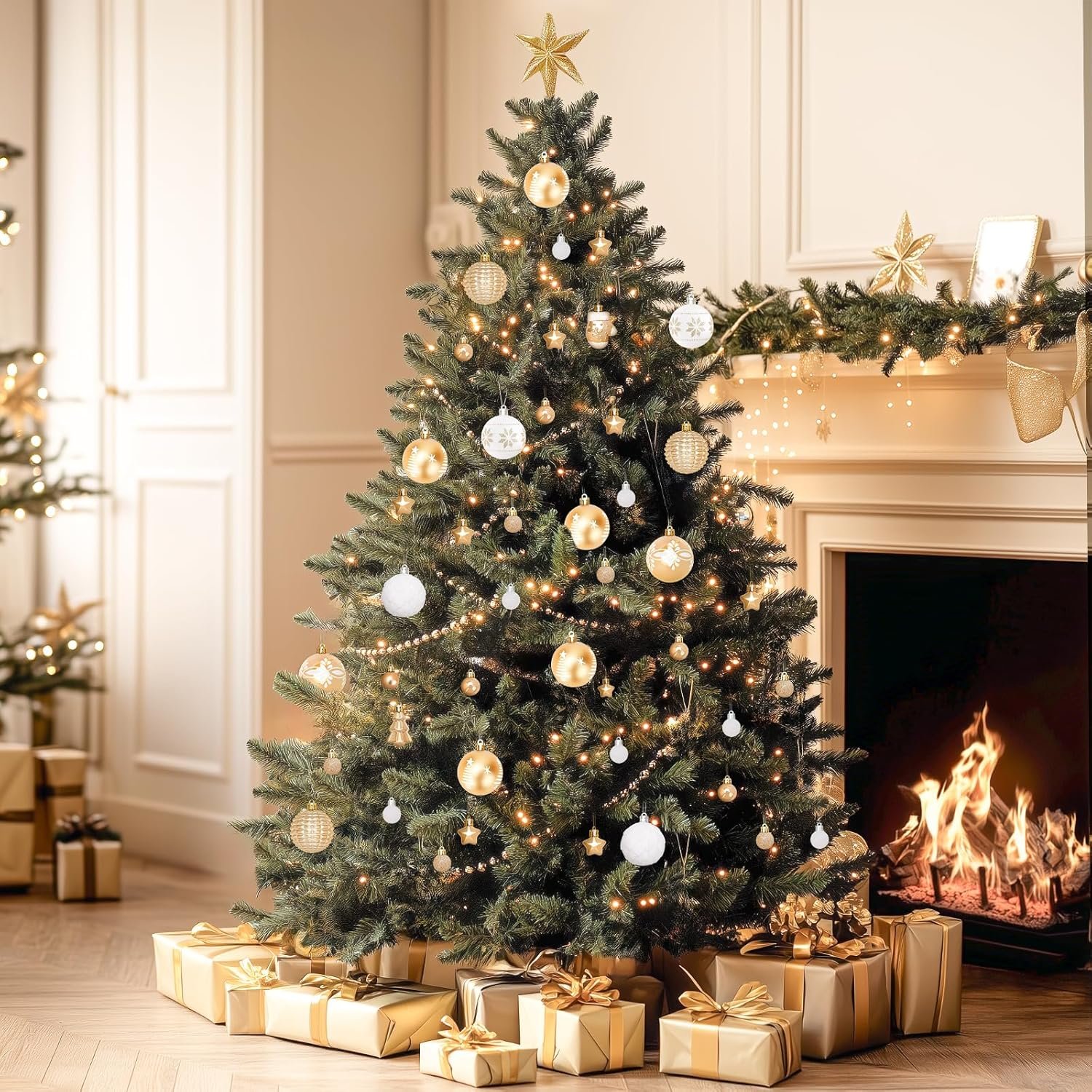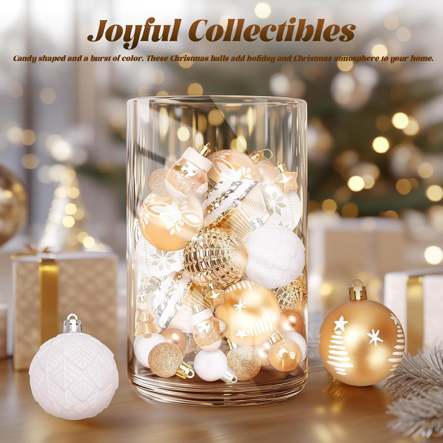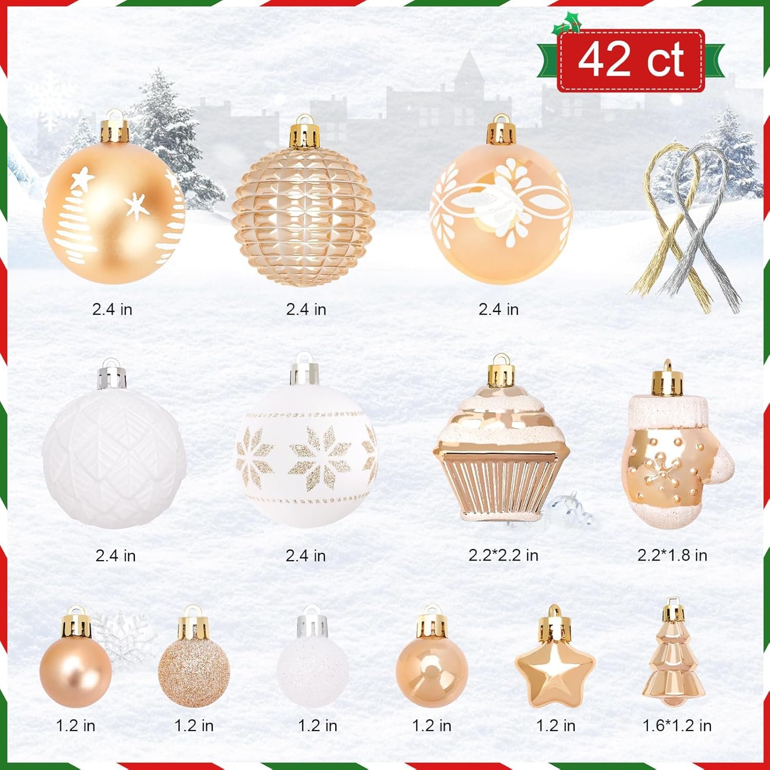 FestiveBliss Christmas Ball Ornaments, 42 Pcs Shatterproof Plastic Christmas Balls for Xmas Tree Ornaments, Holiday Wreath Decor (Gold & White)