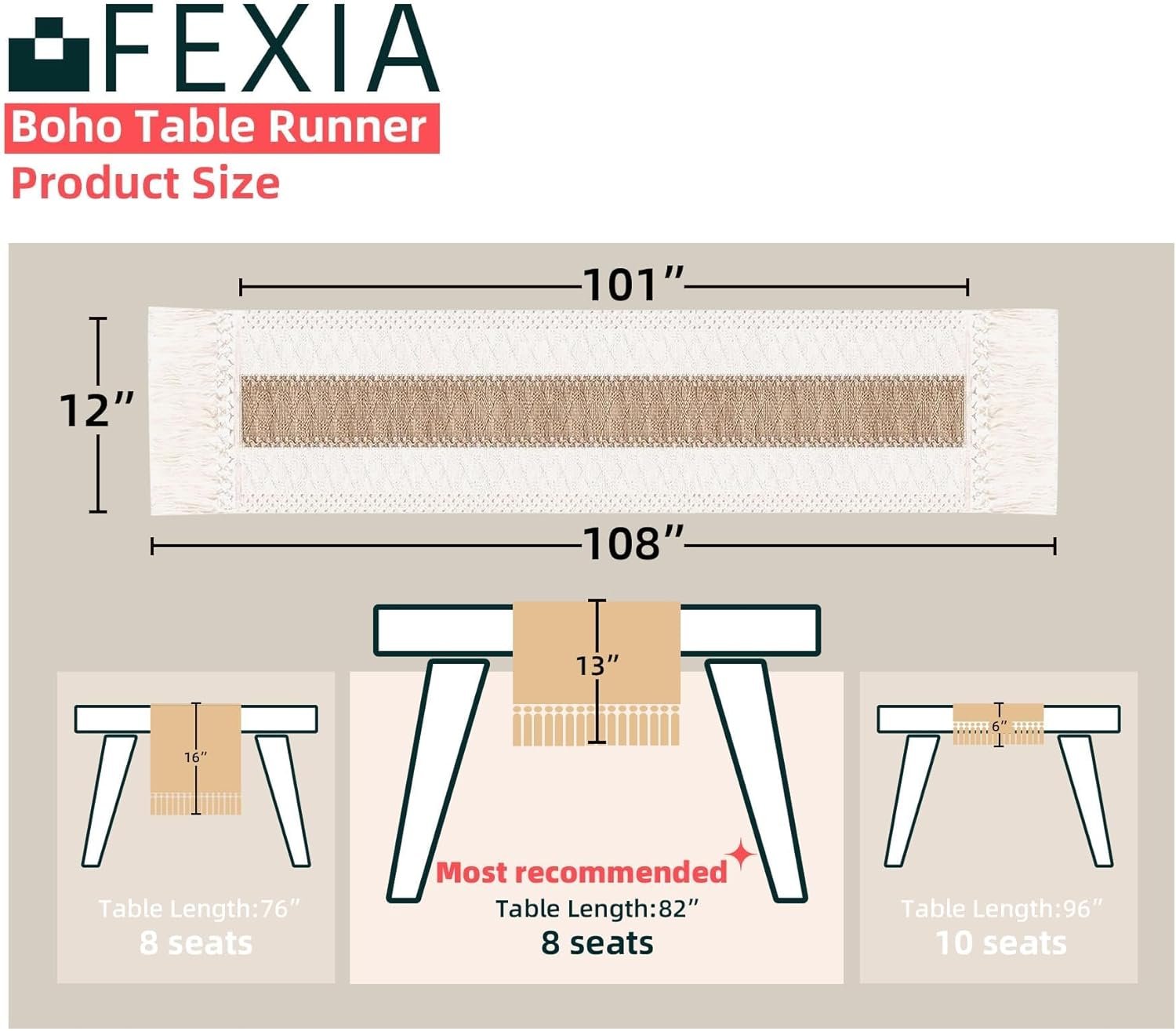 [Perfect 108 Inch Long] Our boho table runner with tassels measures 12 x 108inch, fits a dining table that seats 8-10 people. It can give your tables a rustic and boho look.