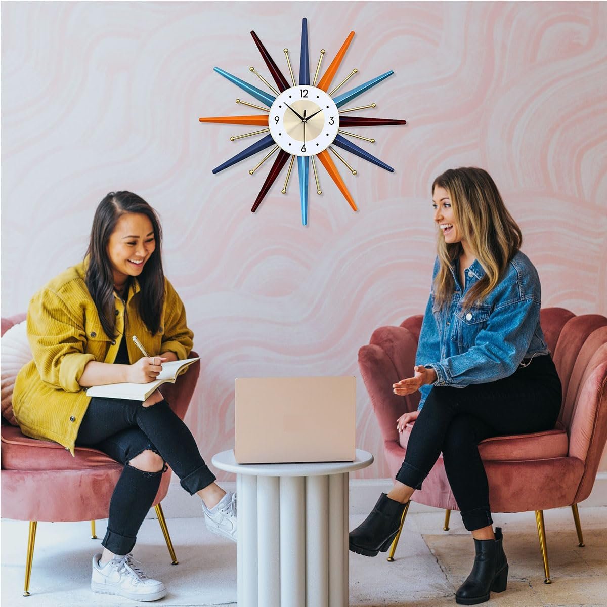 Mid-Century Design: The large starburst wall clock is a valuable piece of home decor for anyone who loves mid-century decor. The wall clock is the piece that your mid-century home needs.
