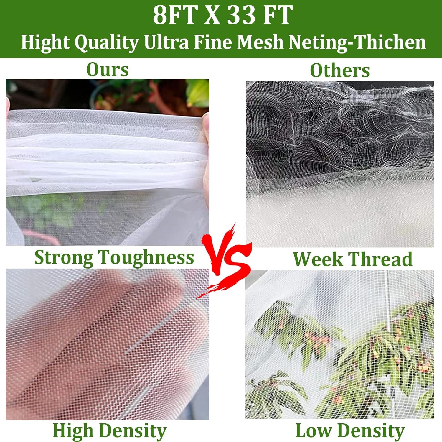 ✔ULTRA-FINE MESH NETTING: Made of high-quality PE materials, Soft&heavy-duty and reusable. the garden netting has a 0.8mm x 1mm ultra-fine mesh, effective protect vegetable plants fruits flowers crops, and so on.