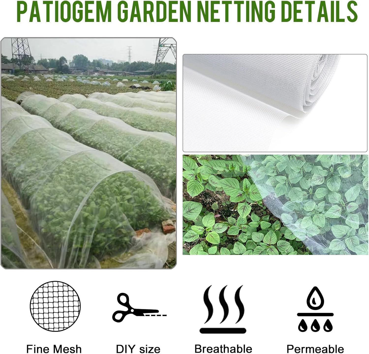 ✔EASY TO USE: Netting for garden plants is light weight and easy to handle during installation. Insect bug mesh can be cut into any sizes that you needed to protect your plants, can be widely used in farms, orchards, terraces, nurseries, pavilions, pergola and gardens.