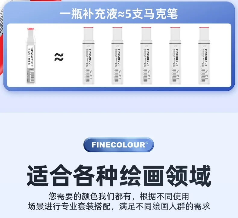 Finecolour 20mm Wide Markers Alcohol Line Sketching Art Markers Pen Drawing School Art Supplies EF105