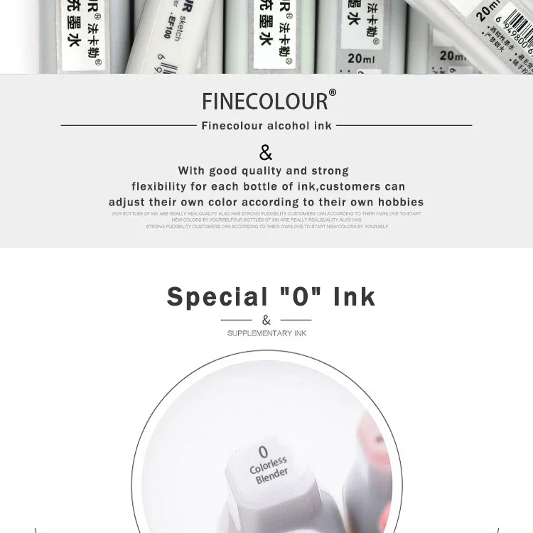 Finecolour Oily Alcoholic Marker 20ML Ink Universal Replenishing Fillable Liquid Ink Art School Officel Supplies EF900 1pcs