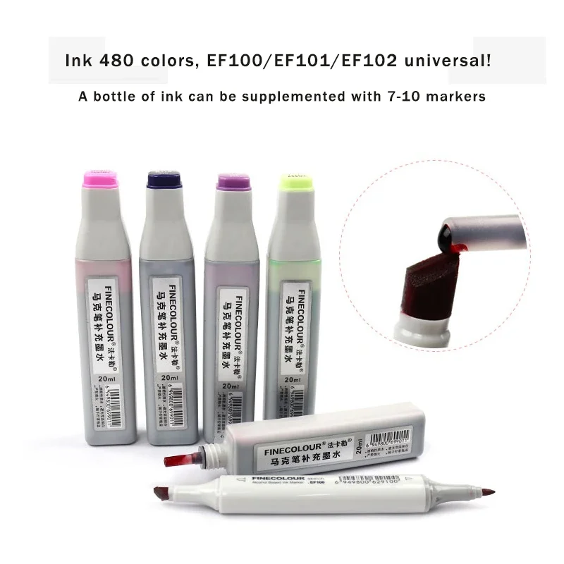 Finecolour Oily Alcoholic Marker Ink EF100/101/102 Universal 20ML Replenishing/Supplement/Fillable Liquid Ink 480 Colors EF900
