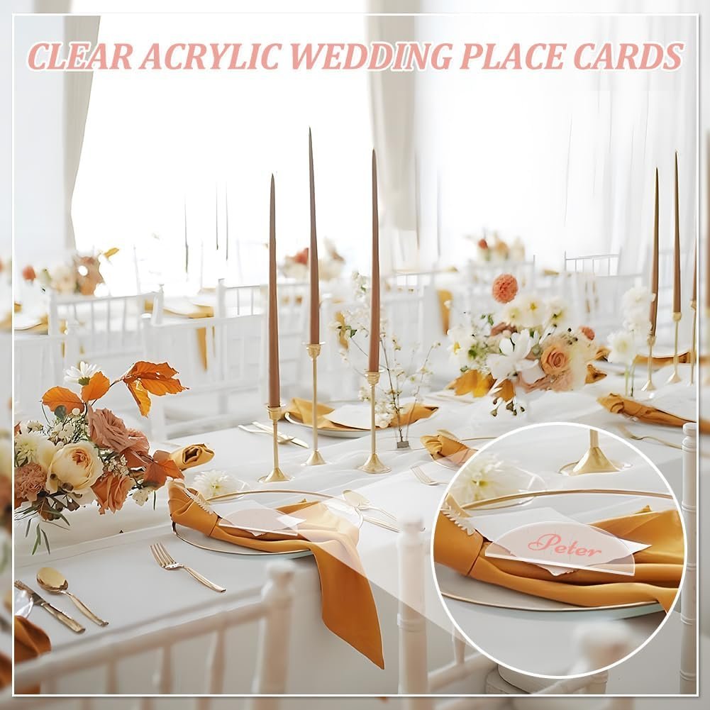 Package & Size: You will receive 36 pcs Clear Acrylic Wedding Place Cards. Size: about 100mm/3.9inch wide, 45mm/1.8inch long, 3mm thick.