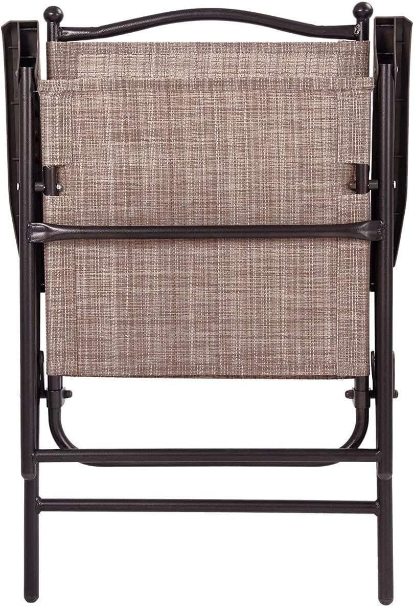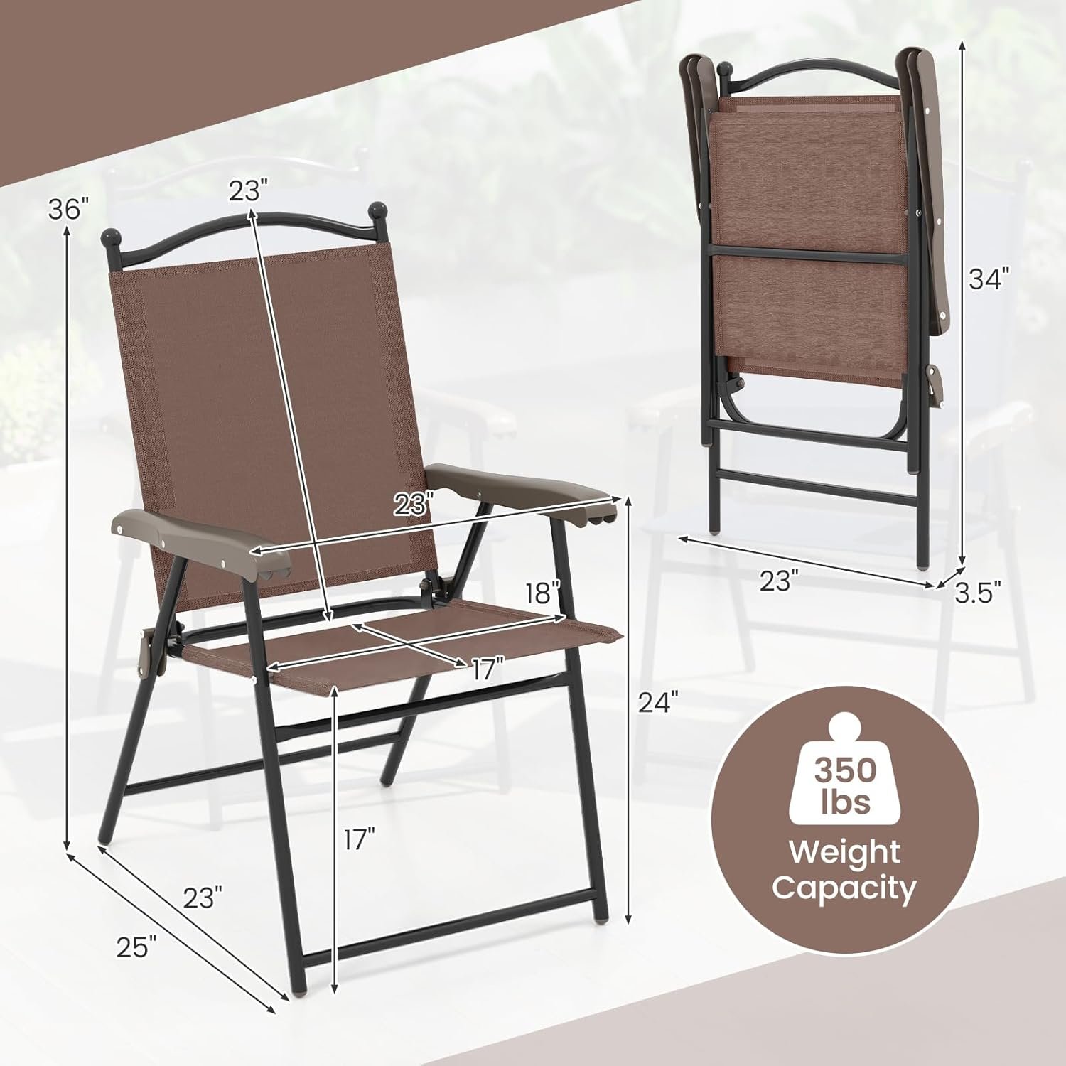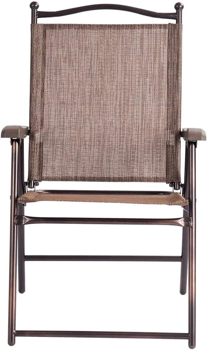 Fireflowery Set of 2 Folding Sling Chairs, Patio Chair w/Armrest & Metal Frame, Portable Dining Chairs for Beach, Garden, Pool, Outdoor & Indoor Use (Brown)