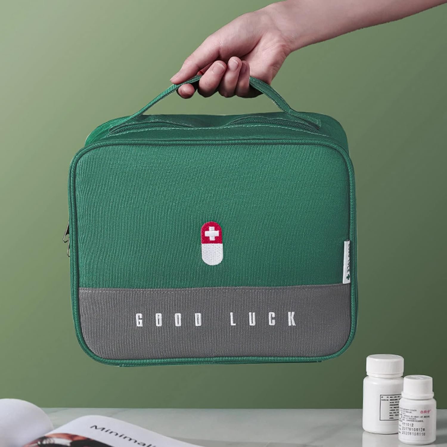 【Exquisite design】With multi-layer independent space design, the first aid kit bag features reasonable partition which makes it more convenient for you to store medic items in place and orderly. Also, the durable two-way zipper makes opening and closing more smoothly. The bag with vivid color is embroidered with Good Luck words, both stylish and practical.
