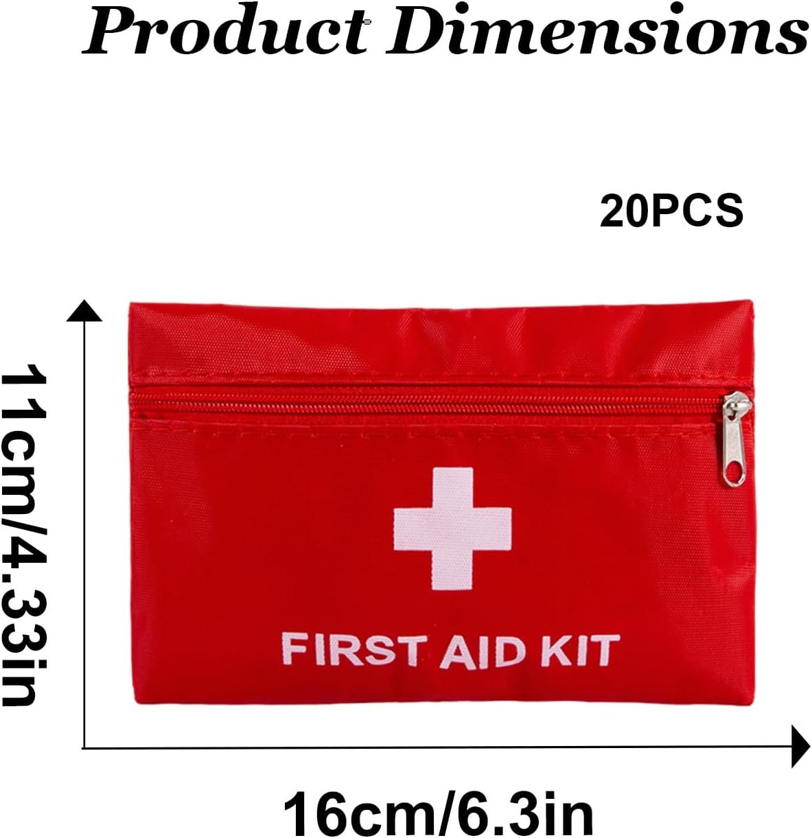 Portable Zipper Pouch:first aid bag empty mesure 4.33*6.3 inch,weighing 15g.Easy to carry and store in your backpack, ideal for outdoor,hiking,camping.