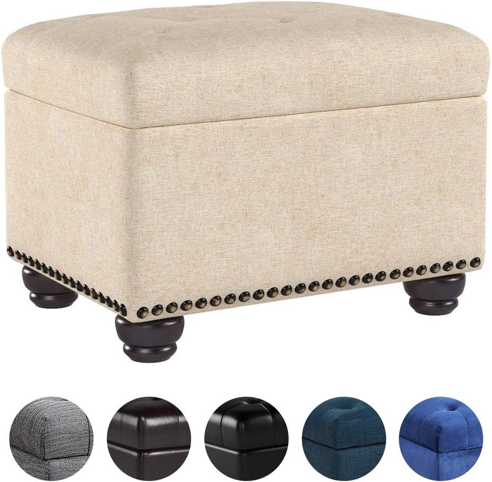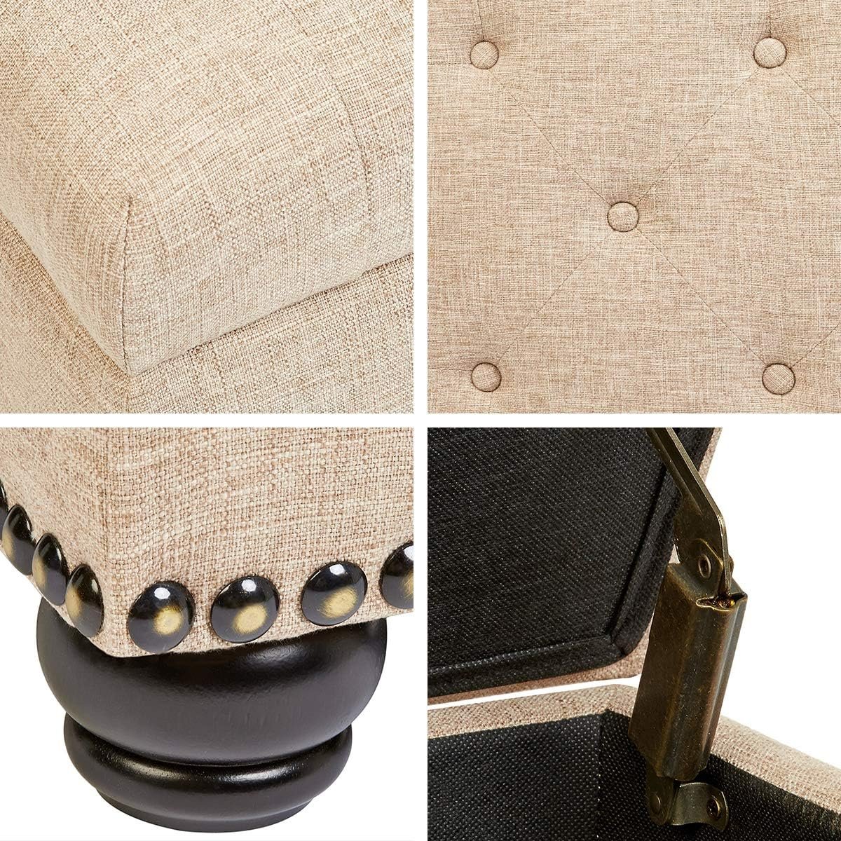 FIRST HILL FHW Fifth Avenue Tan 5th Ave Modern Linen Upholstered Storage Ottoman