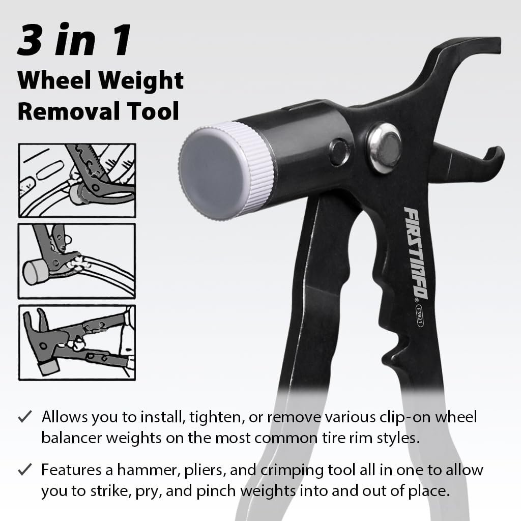 【3 IN 1 TIRE WEIGHT REMOVAL TOOL】Use this wheel weight removal tool to install, remove, or tighten wheel weights on the tire rims precisely and easily. Enhance efficiency in weight management tasks.