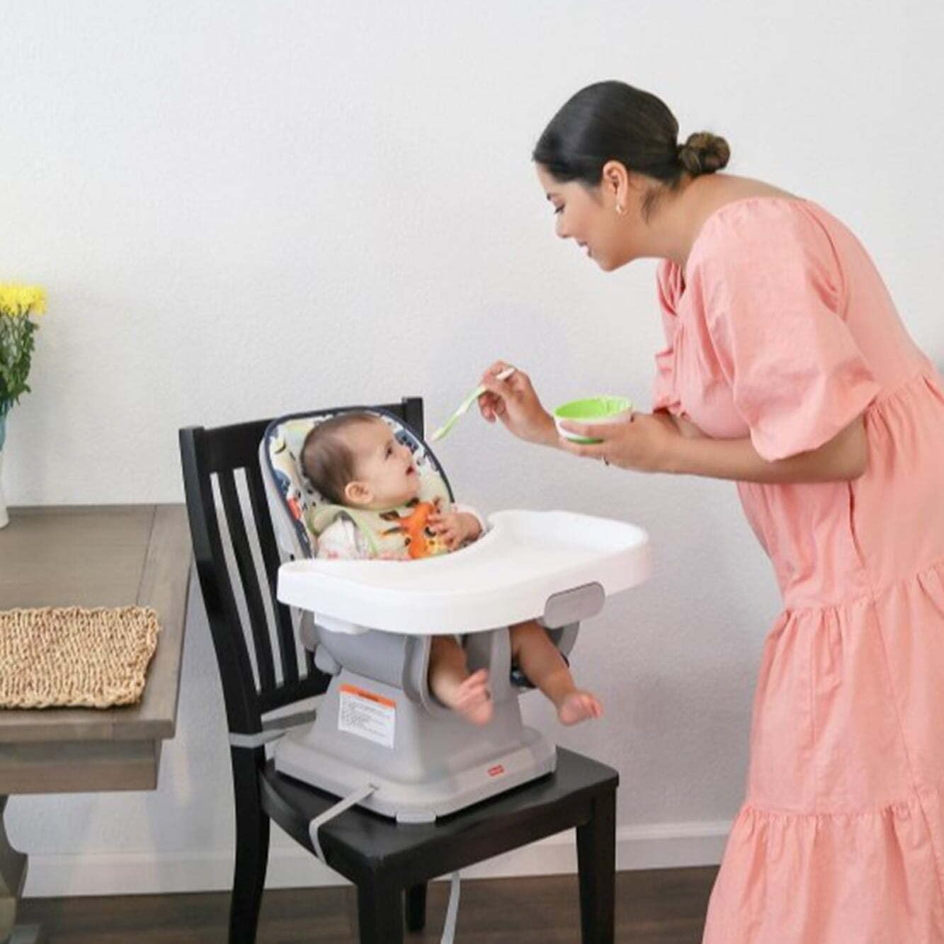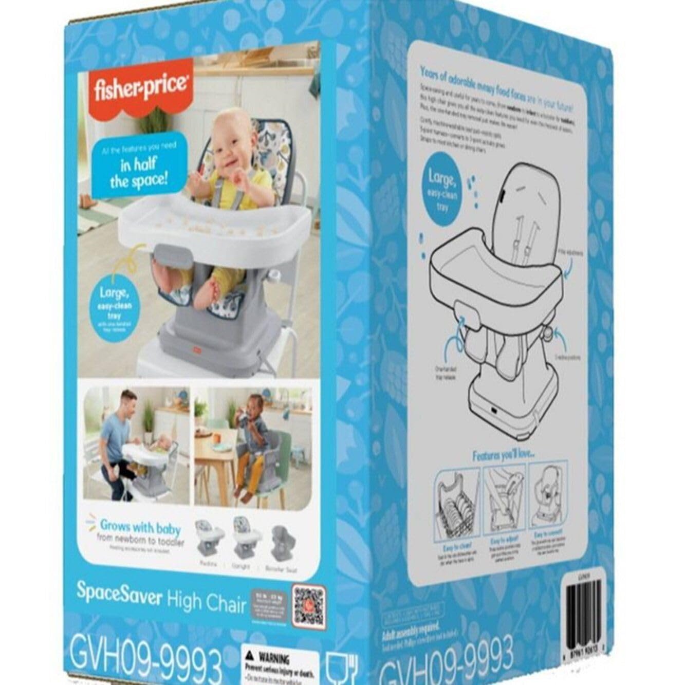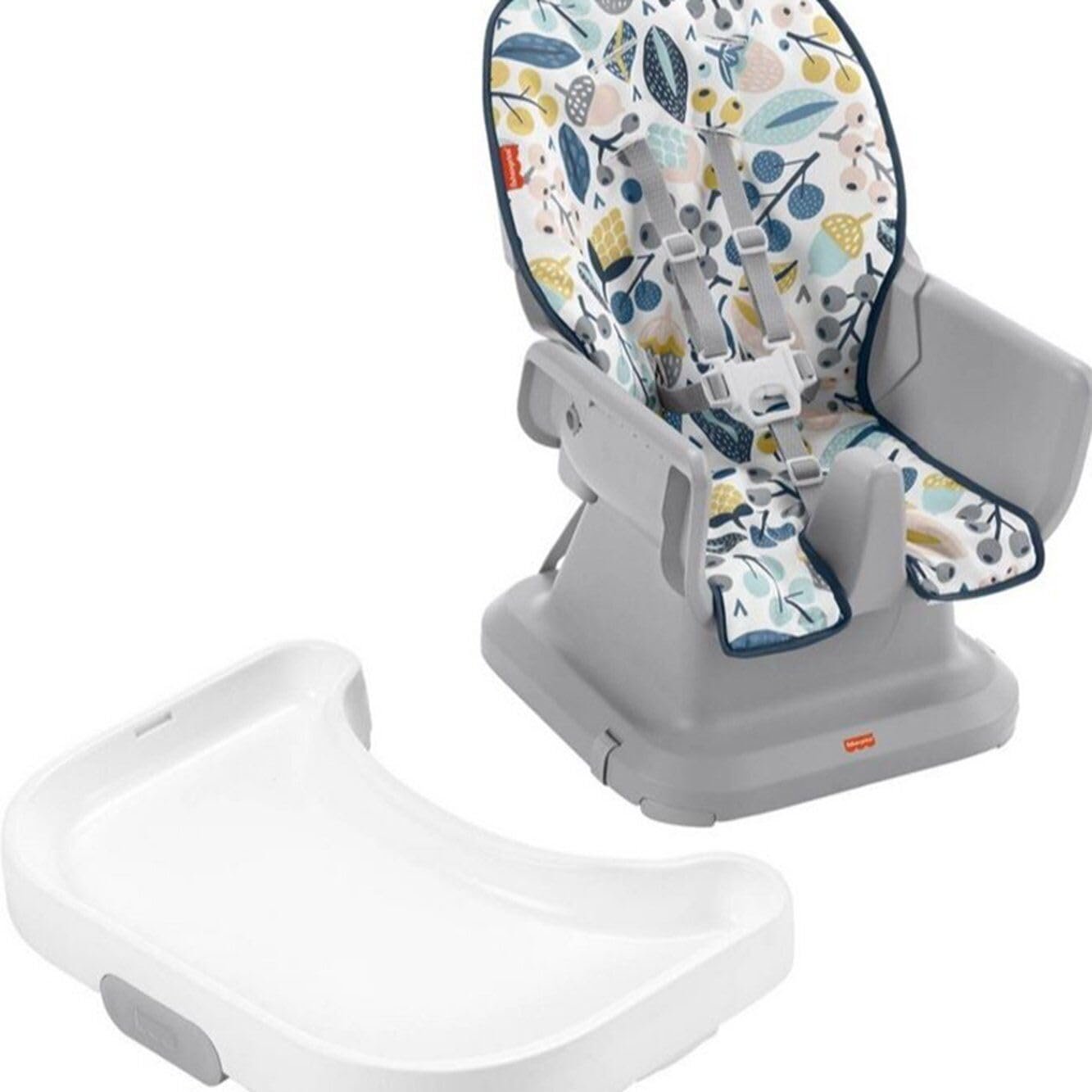 Fisher-Price Baby to Toddler High Chair SpaceSaver Simple Clean Portable Dining Seat & Booster with Washable Deep Tray & Liner, Pacific Pebble